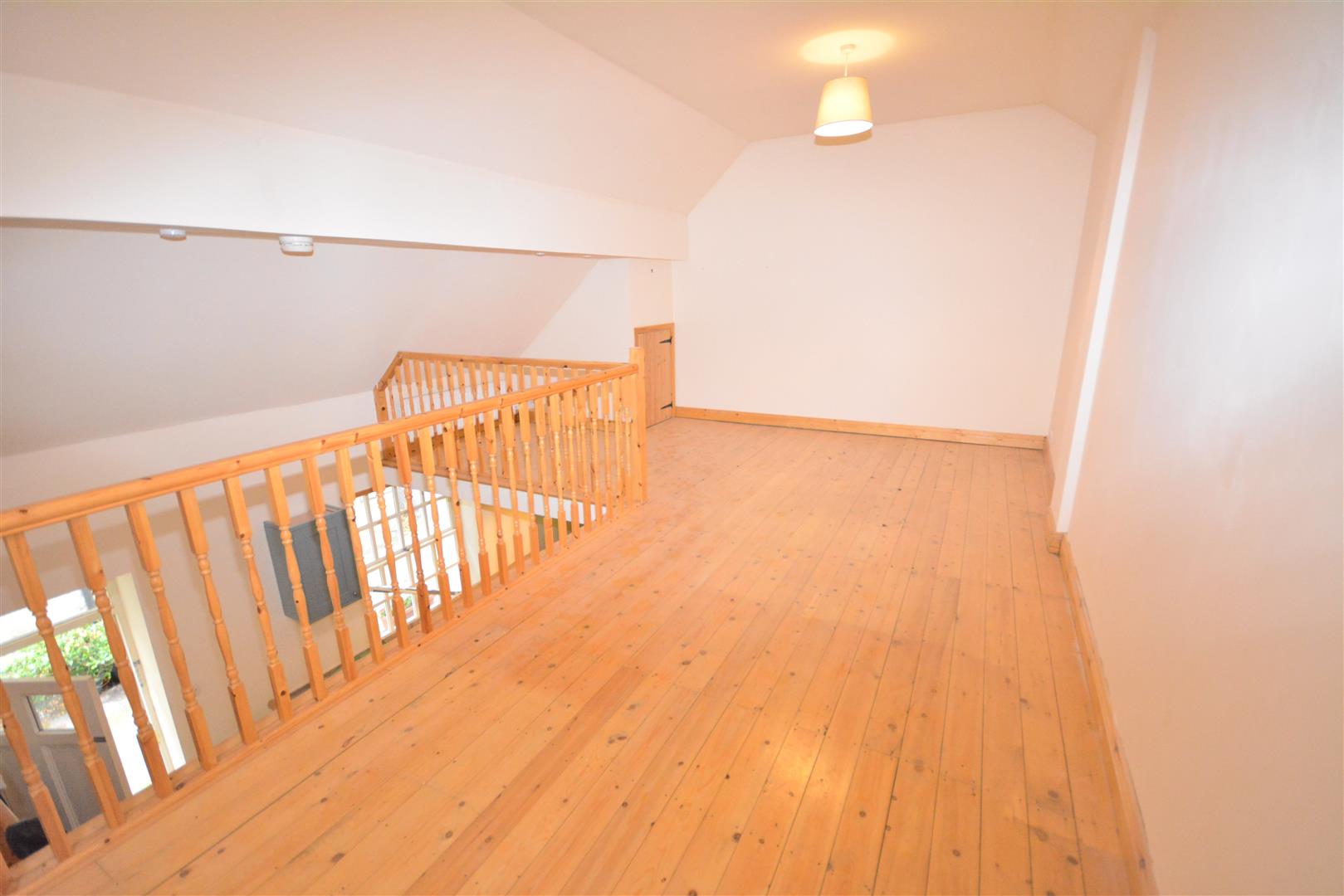 Spacious Mezzanine bedroom with wooden flooring, central heating radiator and storage cupboard.