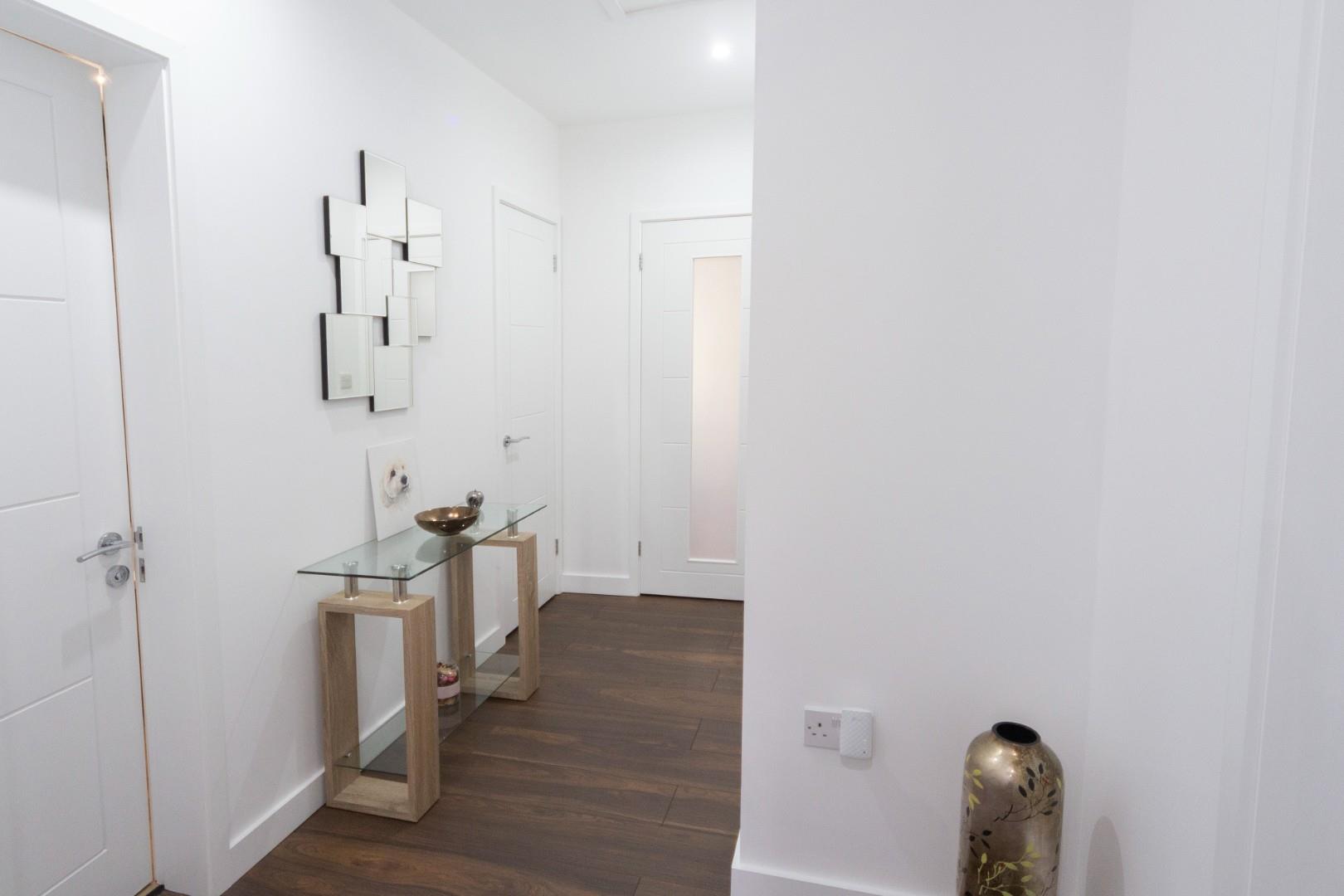 Has attractive wood effect flooring which continues through to the open plan kitchen area, there is a useful storage cupboard for shoes and which houses the Baxi domestic hot water and central heating boiler and a further large storage cupboard ideal for coats, hoovers and ironing board, all doors lead off.