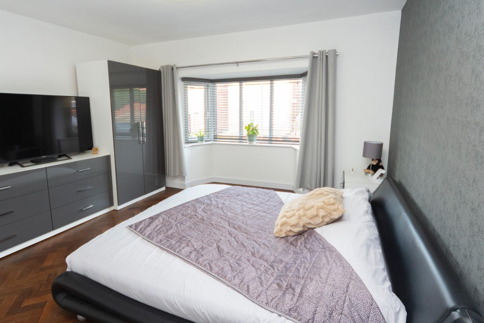 Has lovely Parquet wood flooring, bay window to the front aspect, radiator, ceiling light point and door opens through to the luxury en suite.