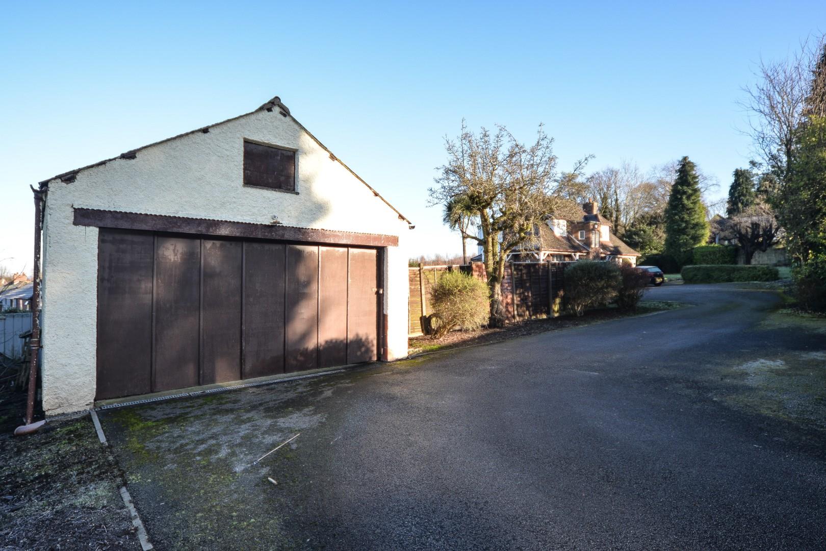 The property sits back behind an extensive driveway, with a large garage and provides ample space for parking numerous vehicles, the front lawn has mature trees and shrubs and to the rear is a large paved patio area with steps that lead down to a good sized lawn with mature trees.