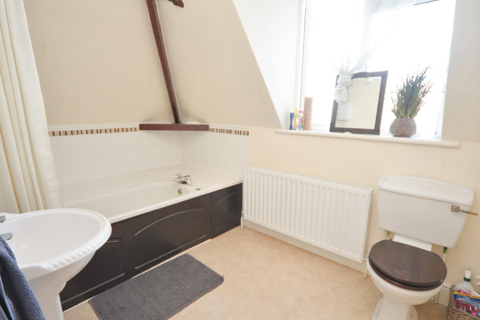 Has a built in panelled bath with electric shower over, pedestal hand wash basin and W.C., there is a window to the rear aspect, radiator and ceiling light point,
