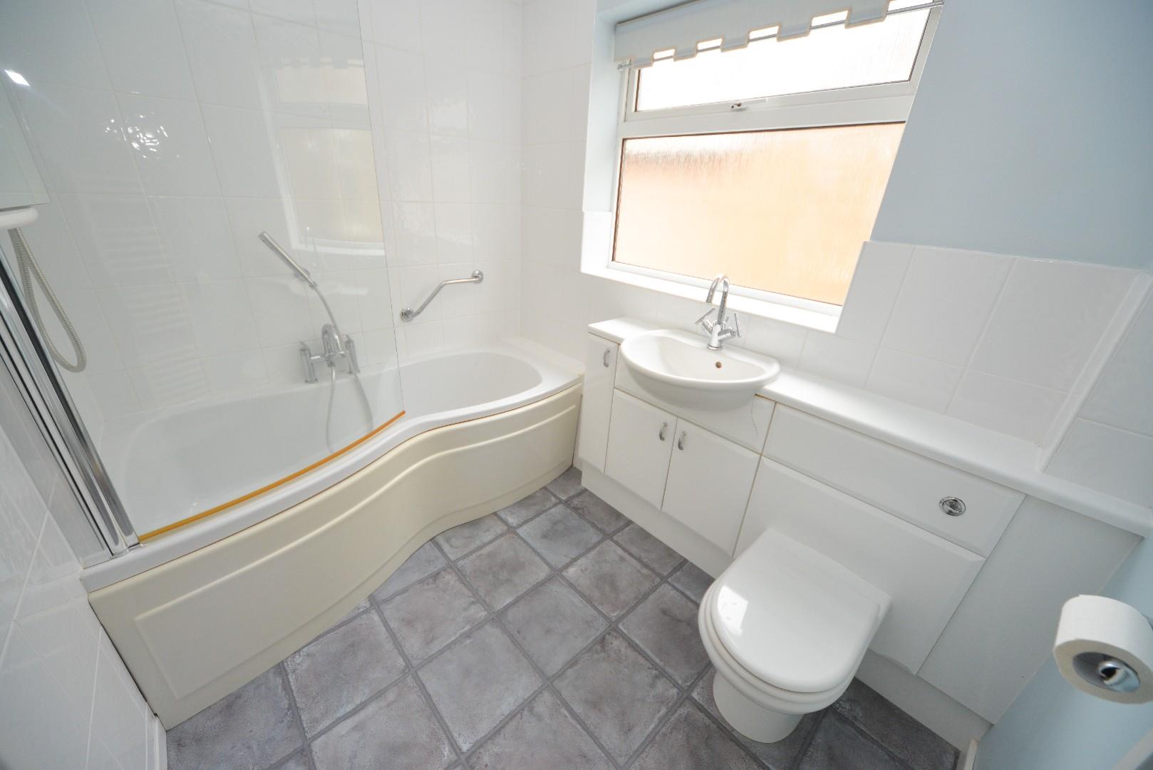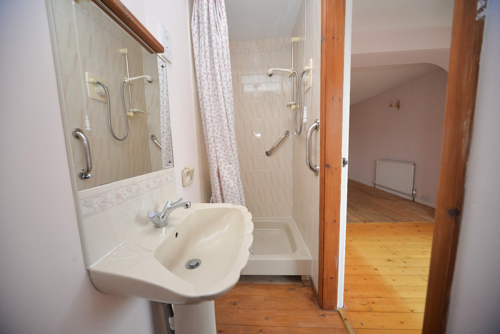 Has a large fully tiled shower enclosure, pedestal hand wash basin and W.C. There is a highline obscure window to the side aspect and radiator.