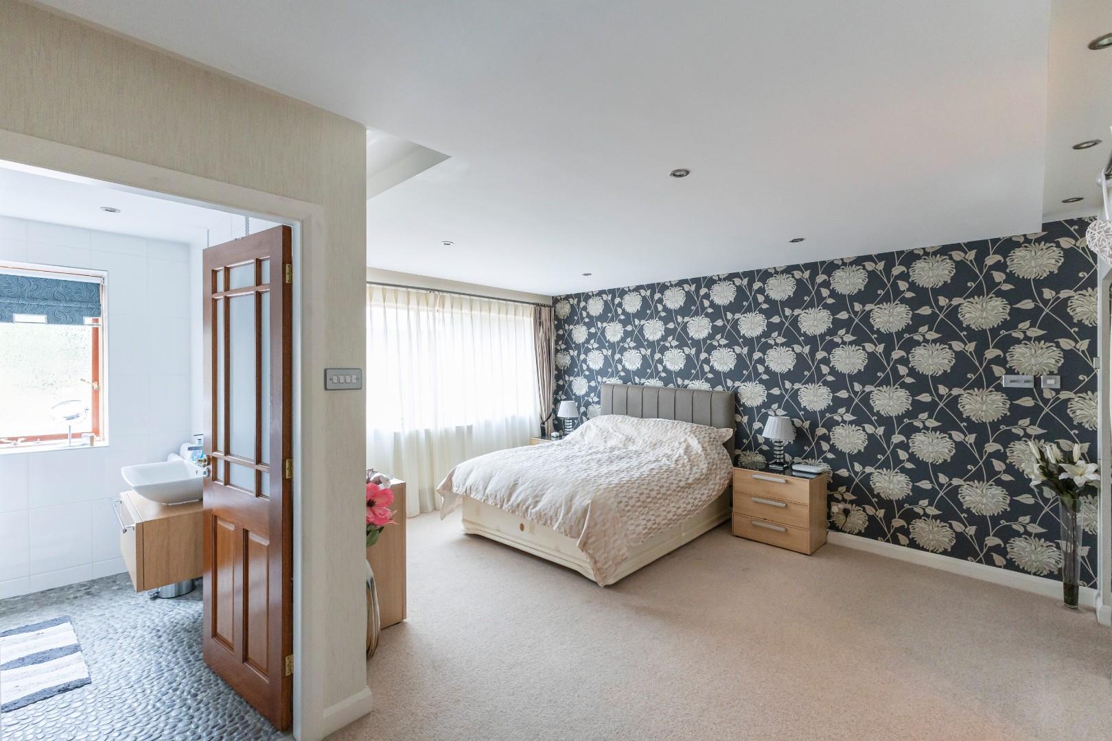 The principal bedroom looks out over the rear garden and has a walk-in wardrobe and ensuite shower room. There are three more double bedrooms on this floor: the second bedroom also has en suite facilities.
