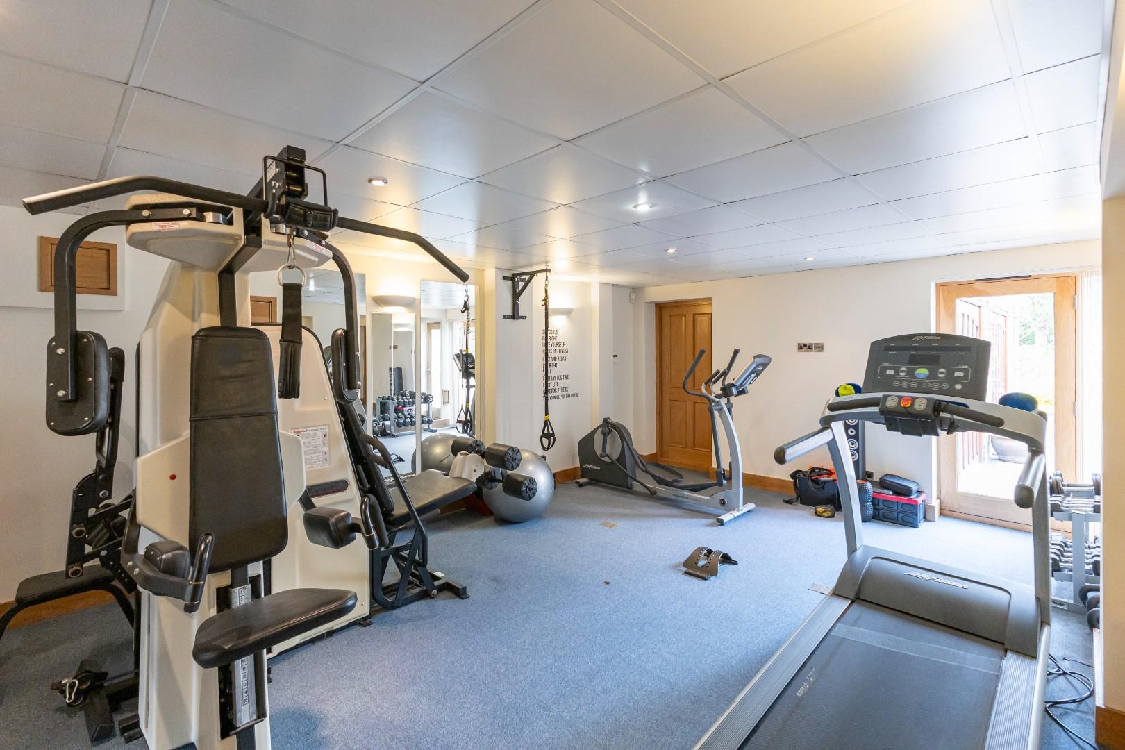 The most fantastic feature of this home is the leisure suite, with its 4m x 8m heated pool, shower room, and sauna. A lobby area leads into the gym, which has an equipment storage room and access to the garage.