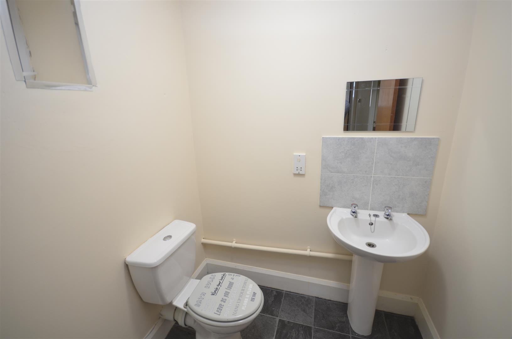 With three piece suite comprising, low flush w.c., pedestal wash hand basin and shower cubicle with fitted shower and complementary ceramic wall tiling. Sealed unit double glazed window to the side.