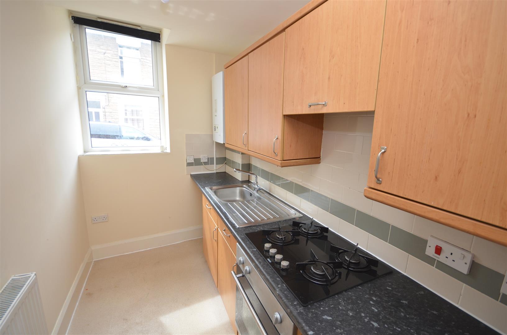With range of fitted base, wall and drawer units all with matching cupboard fronts, roll edge laminated work surface with inset stainless steel sink unit and draining board, built-in four ring gas hob and integrated electric fan assisted oven. integral extractor hood, plumbing suitable for an automatic washing machine, central heating radiator and UPVC double glazed window to the front. Wall mounted gas combination boiler servicing the central heating and hot water systems.