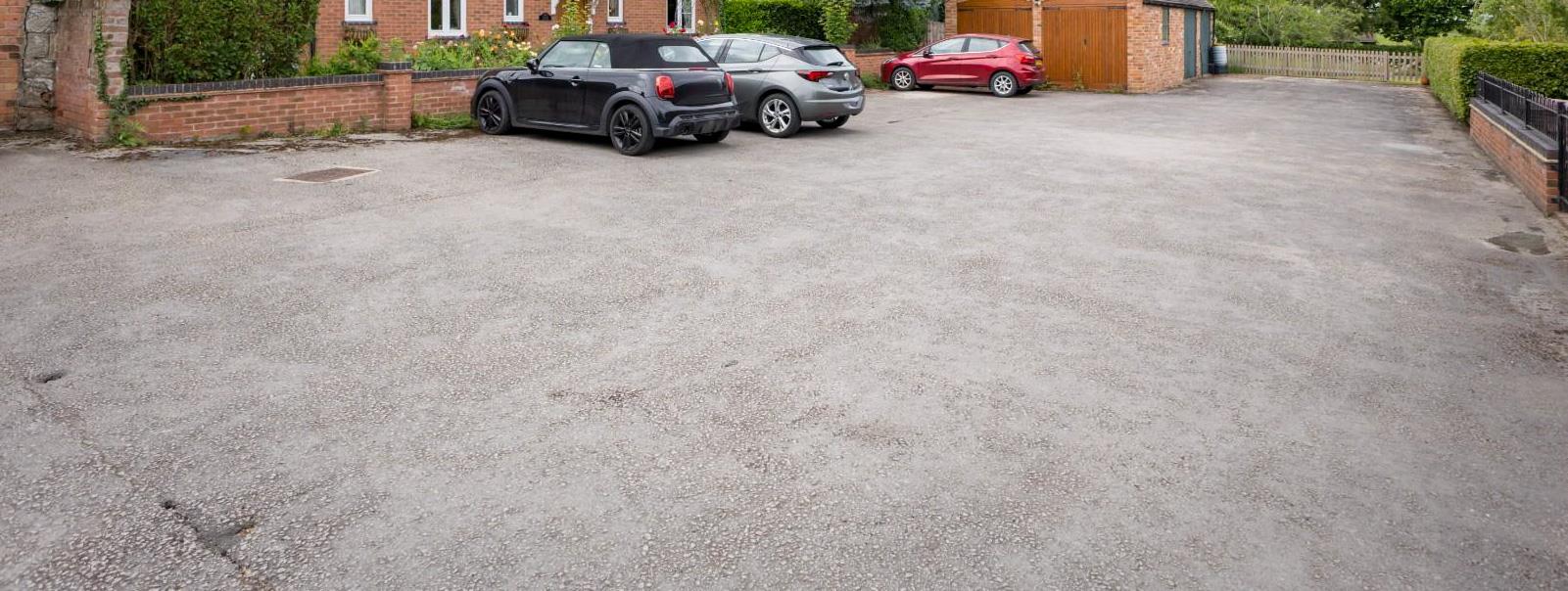 The barn is located within a small courtyard development formed from the original Brook Farm. To the front, there is lateral parking for several vehicles, with additional parking available in a communal area at the bottom of the development.