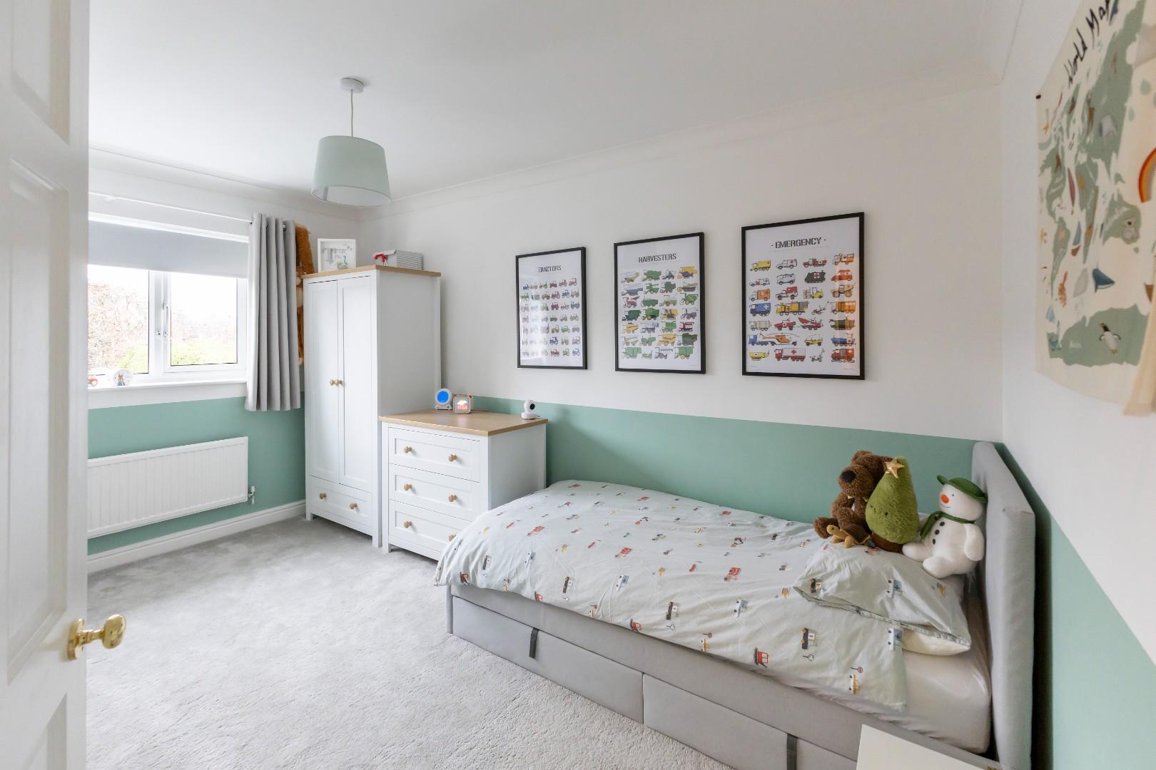 The first floor is home to a generously sized principal bedroom, which benefits from an ensuite shower room. Three further well-proportioned bedrooms provide ample space for family or guests, complemented by a modern fitted bathroom.