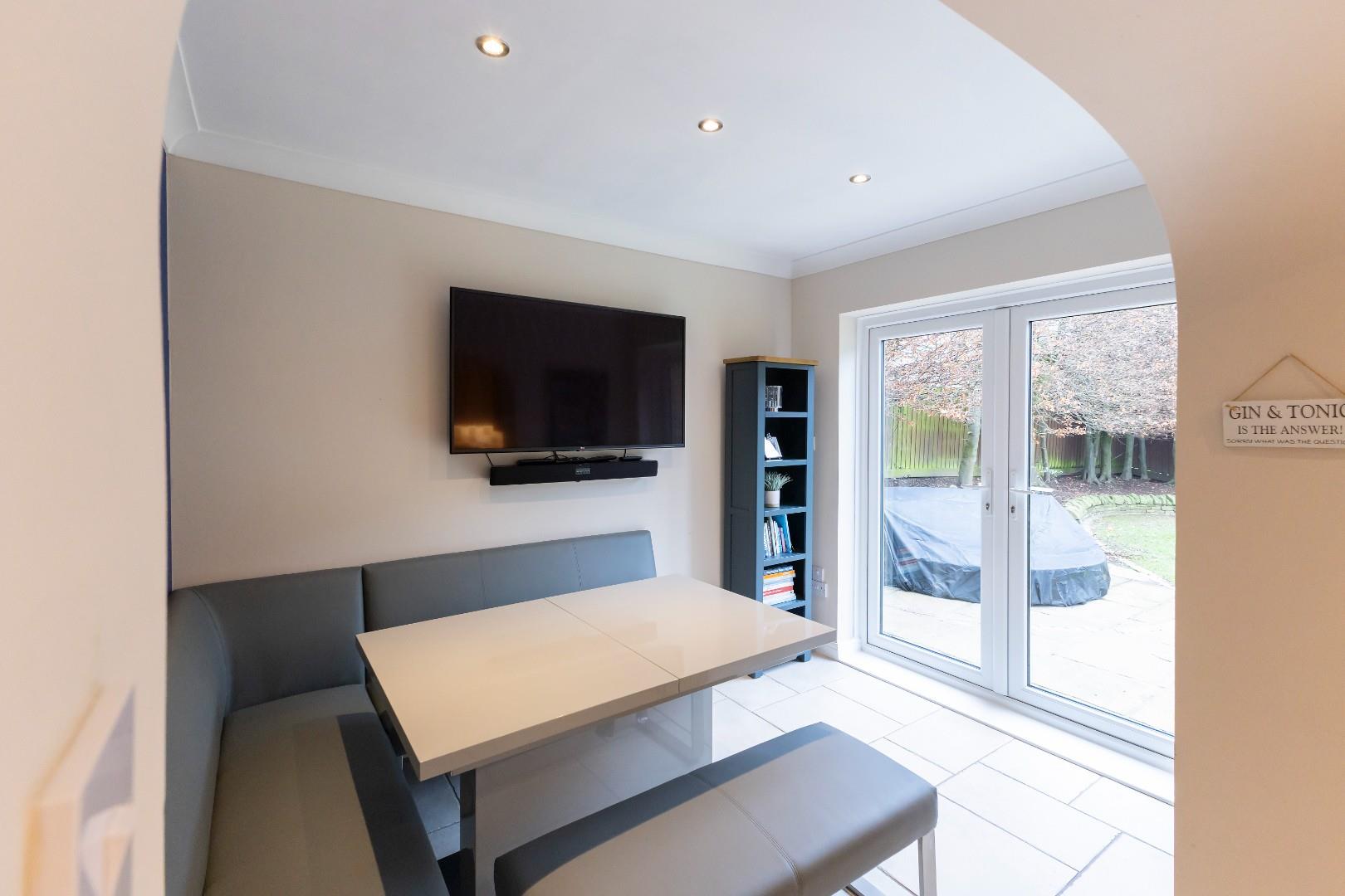 Has a square bay window looking out to the rear garden, recessed ceiling down lights and coving to ceiling. A door leads through to the dining kitchen.