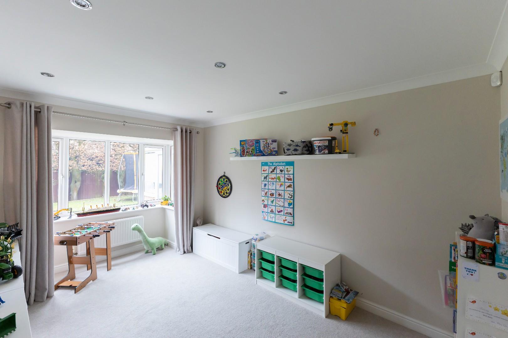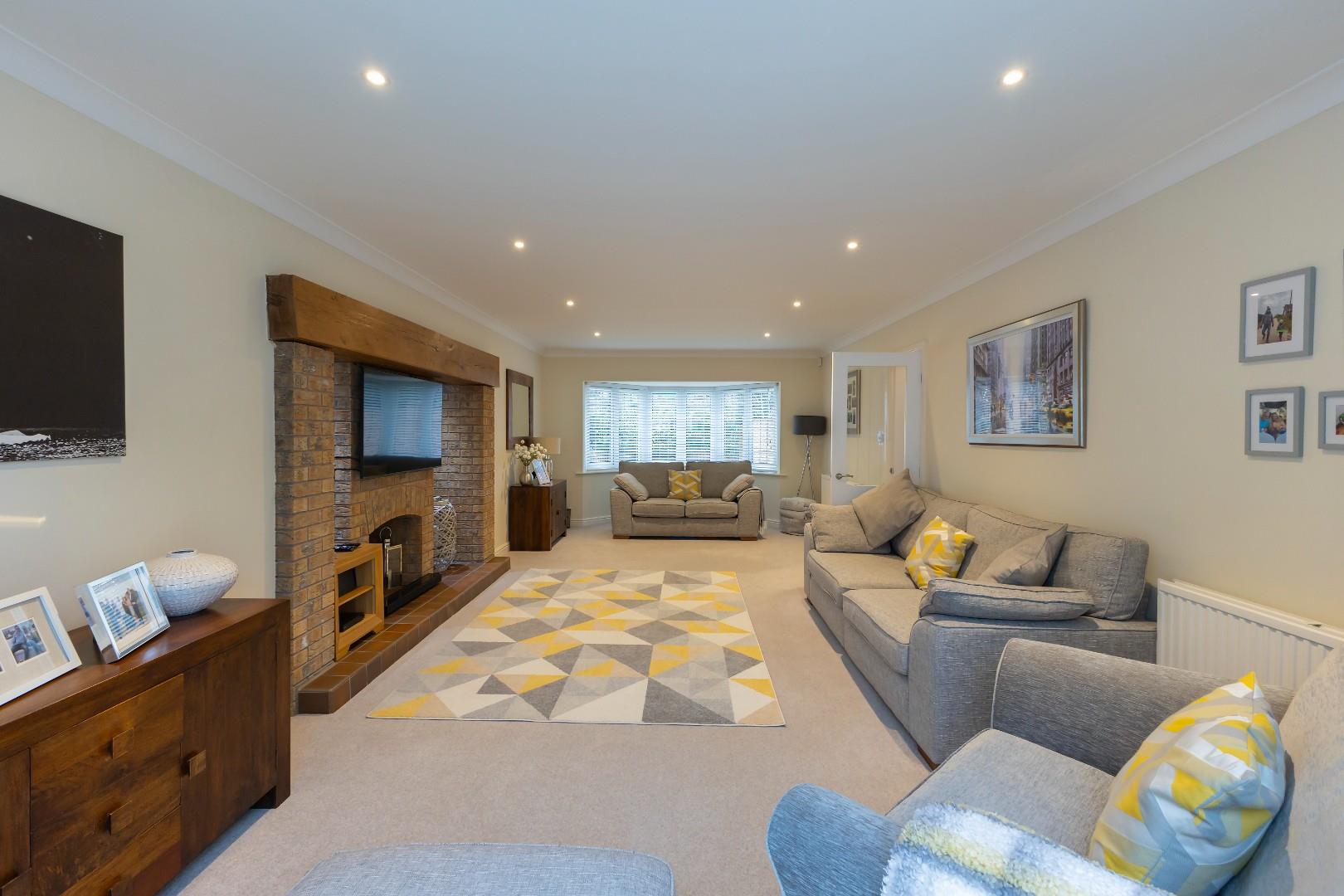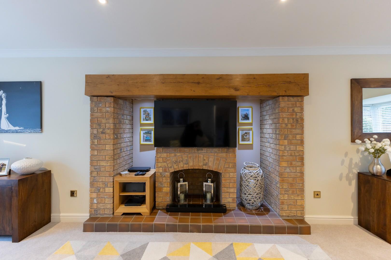 Has a large walk in bay window looking out on to the front aspect with views over the garden, French doors with glazed side panels lead out into the conservatory, there is a radiator, recessed ceiling down lights and the focal point of the room is a feature inglenook style fireplace with tiled hearth and oak timber beam.
