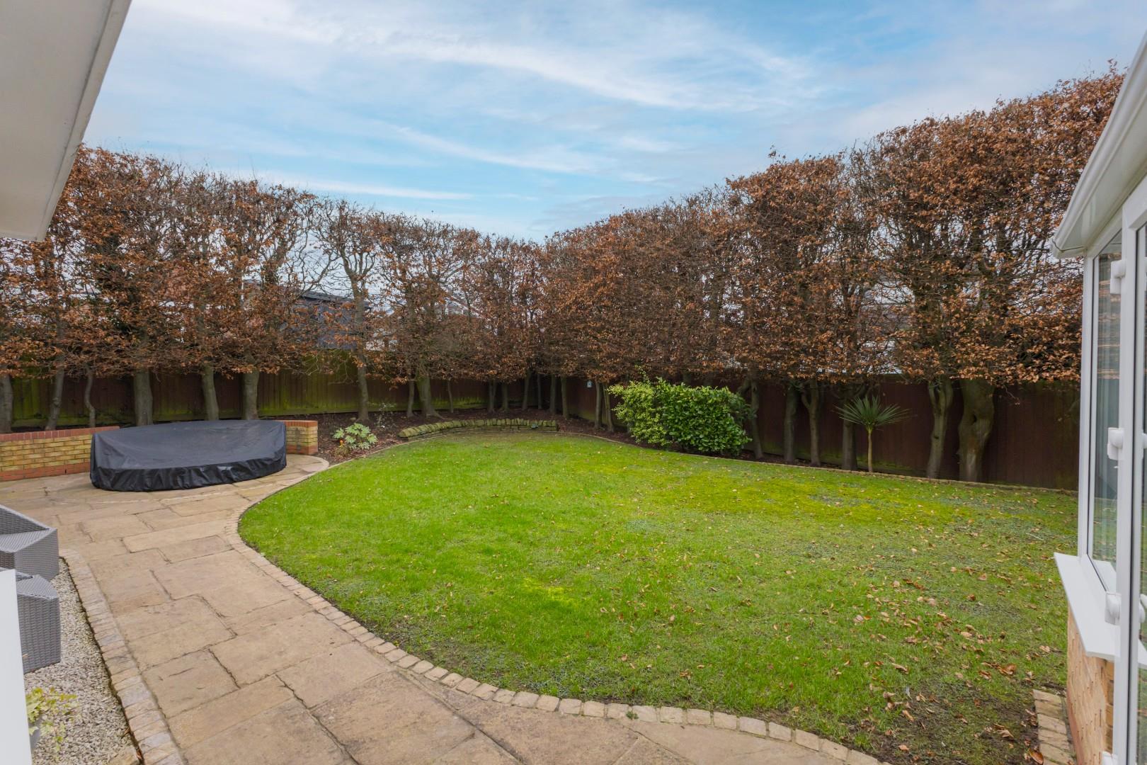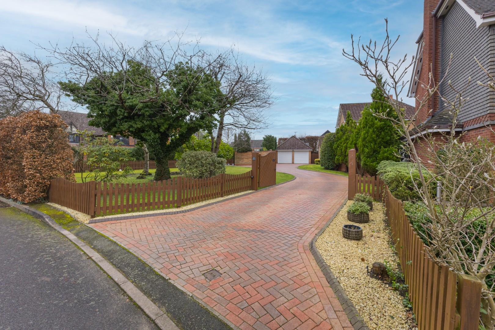 To the front of the property is a true feature, it sits behind a long block paved driveway providing parking for numerous vehicles and leads to a double garage with remote up and over doors, there is a good sized lawn with mature trees and a gate that leads down to the side of the property where there is a further paved patio area leading through to the landscaped rear garden which has shaped lawns, paved terrace and mature Copper beech and fence hedging.