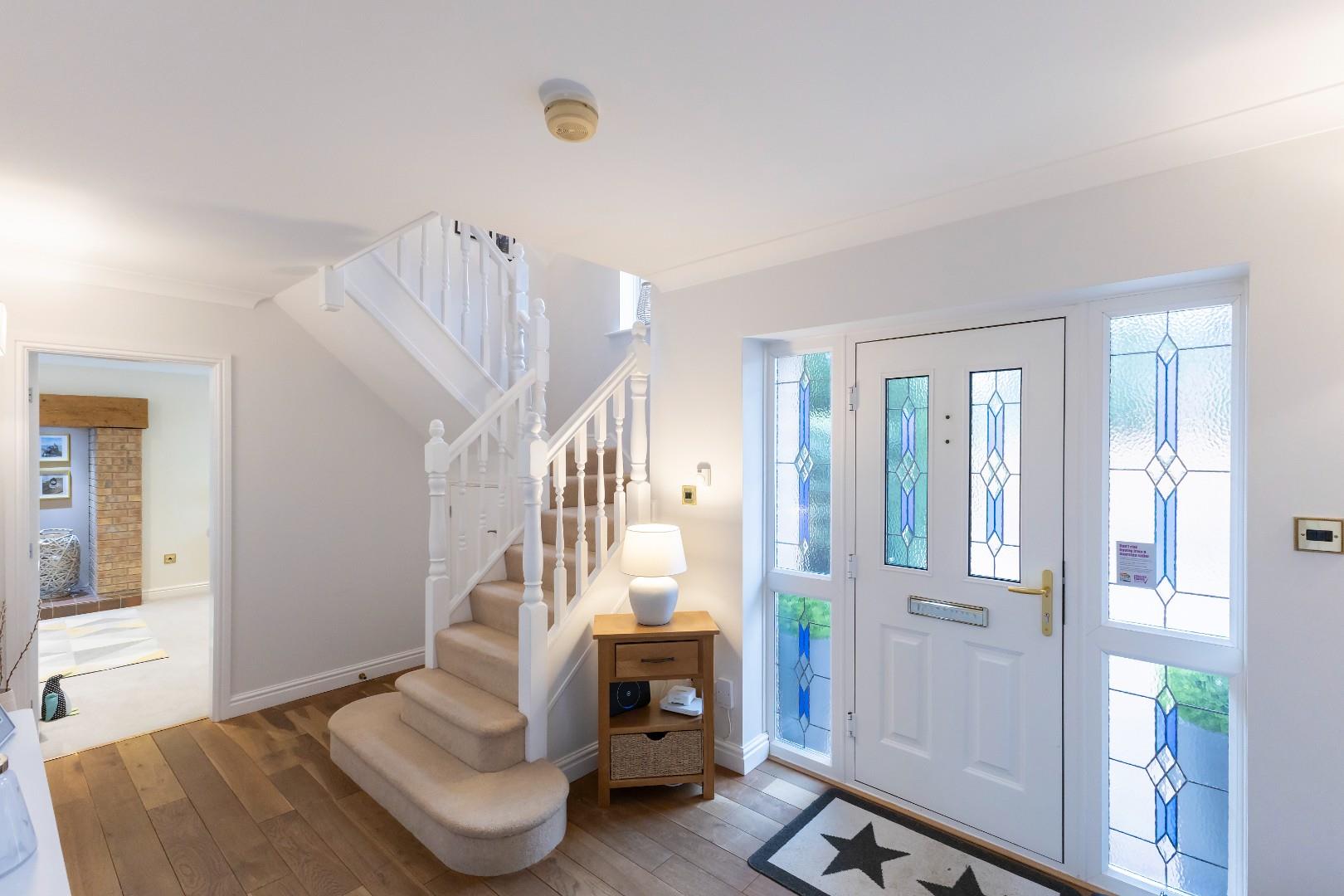 Attractive engineered oak flooring, stairs off to first floor, useful understairs storage cupboard, large built in cloaks cupboard providing hanging space and room for shoes and a further door opening through to the guest cloakroom.