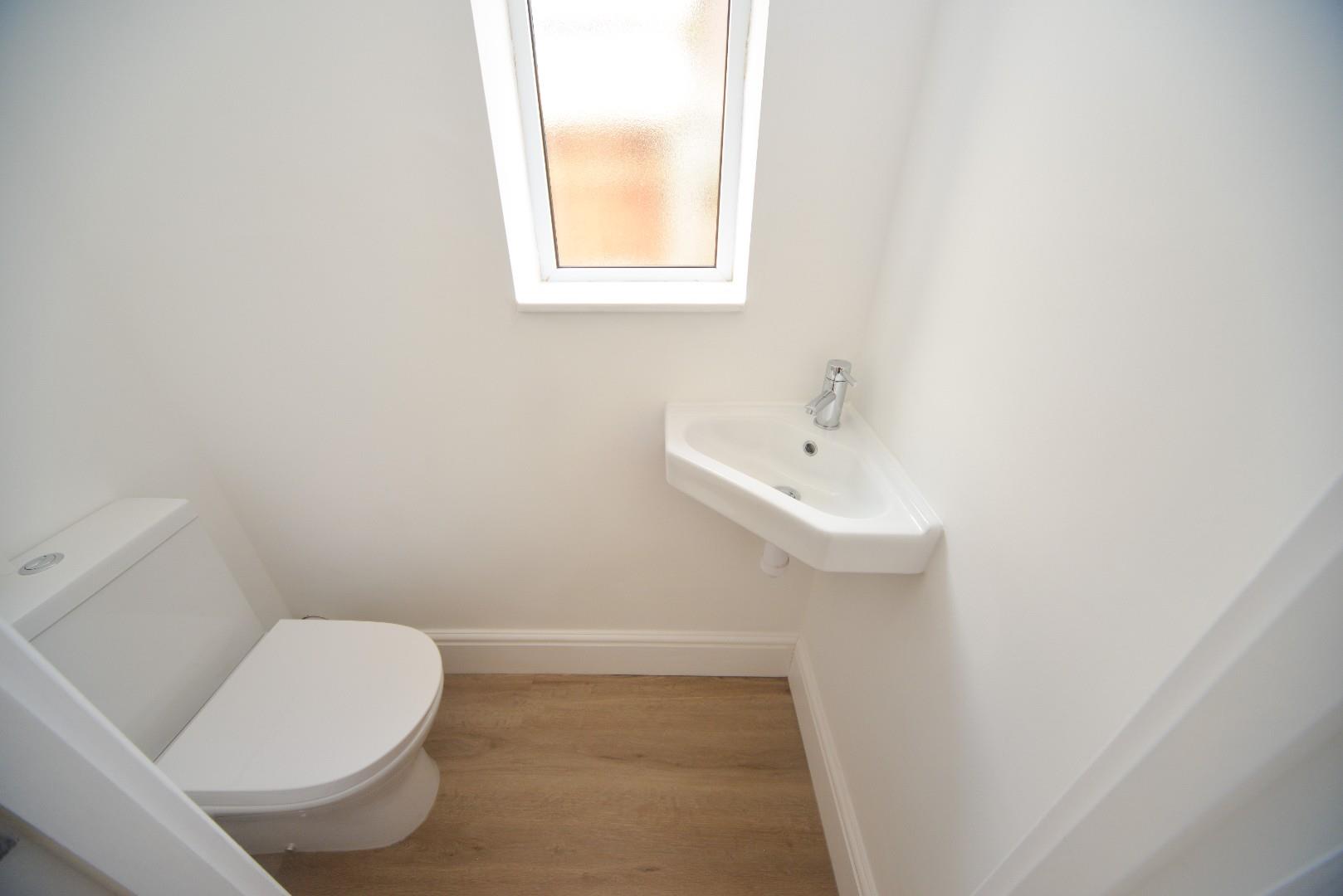 Has wall mounted hand wash basin, W.C., obscure window to the side aspect and recessed ceiling down lights.