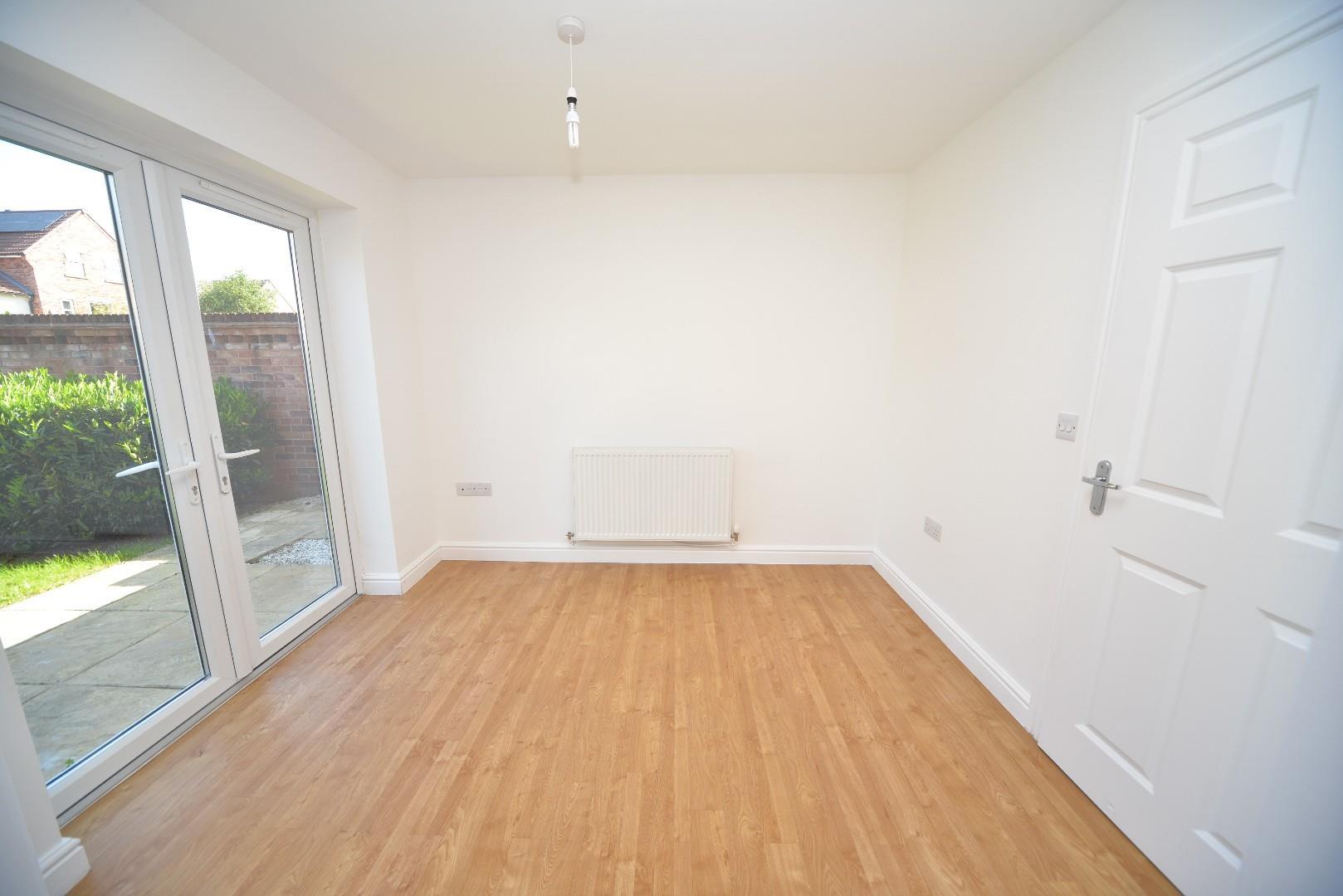 As you enter, you are greeted by a hallway that leads to a convenient cloakroom. The lounge, with its lovely bay window, lets in natural light and offers delightful views over the adjacent green field, creating a peaceful retreat. The dining kitchen, which features French doors that connect the indoor space to the rear garden, is perfect for entertaining or enjoying al fresco dining.