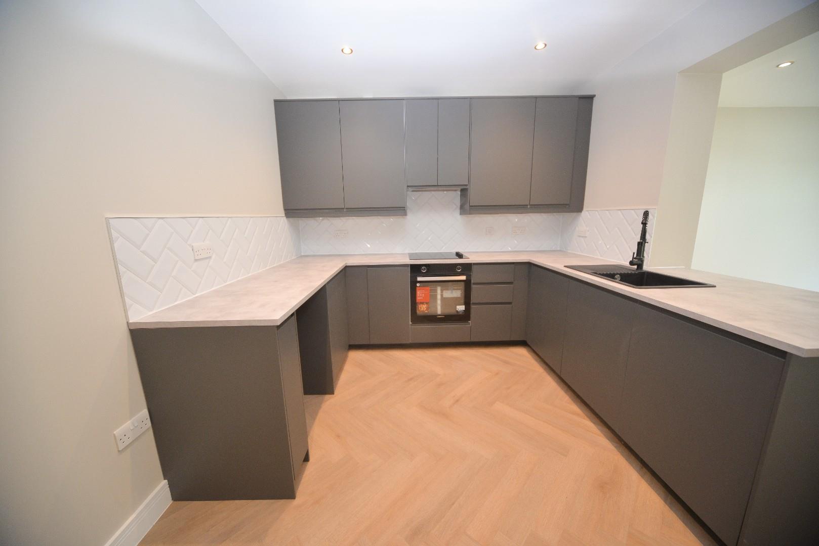 Is beautifully fitted with a range of base cupboards, drawers and matching wall mounted cabinets, attractive worktops incorporate a sink with side drainer and extendable hose, tap, four ring electric hob and oven, there is space for a washing machine, dishwasher is inset and space for fridge freezer, integrated oven, recessed ceiling down lights and attractive tiled splashbacks.
