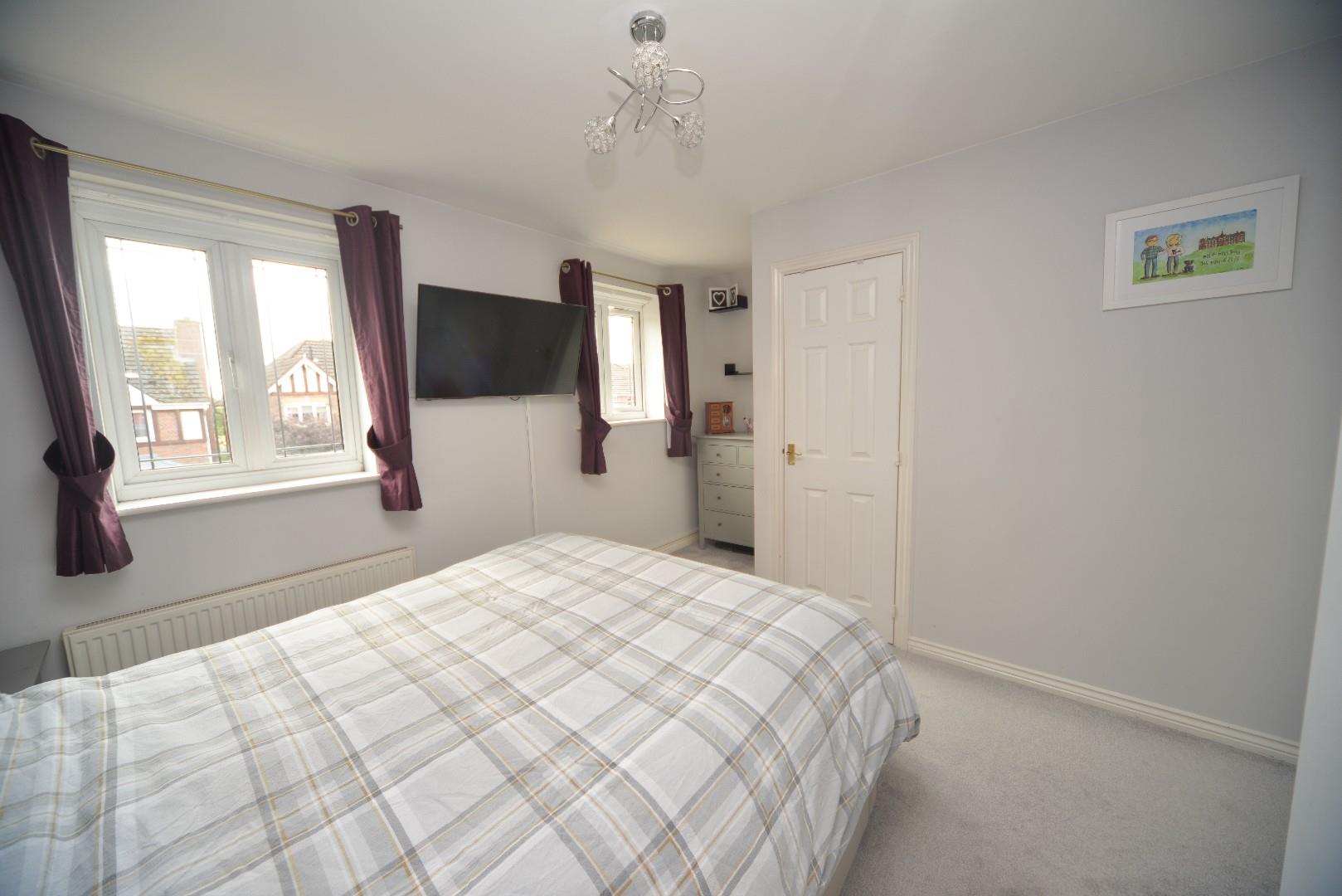 A light and airy room with two windows to the front aspect, a radiator, and a ceiling light point. There is a useful over-stairs storage cupboard and a triple wardrobe providing hanging space and shelving