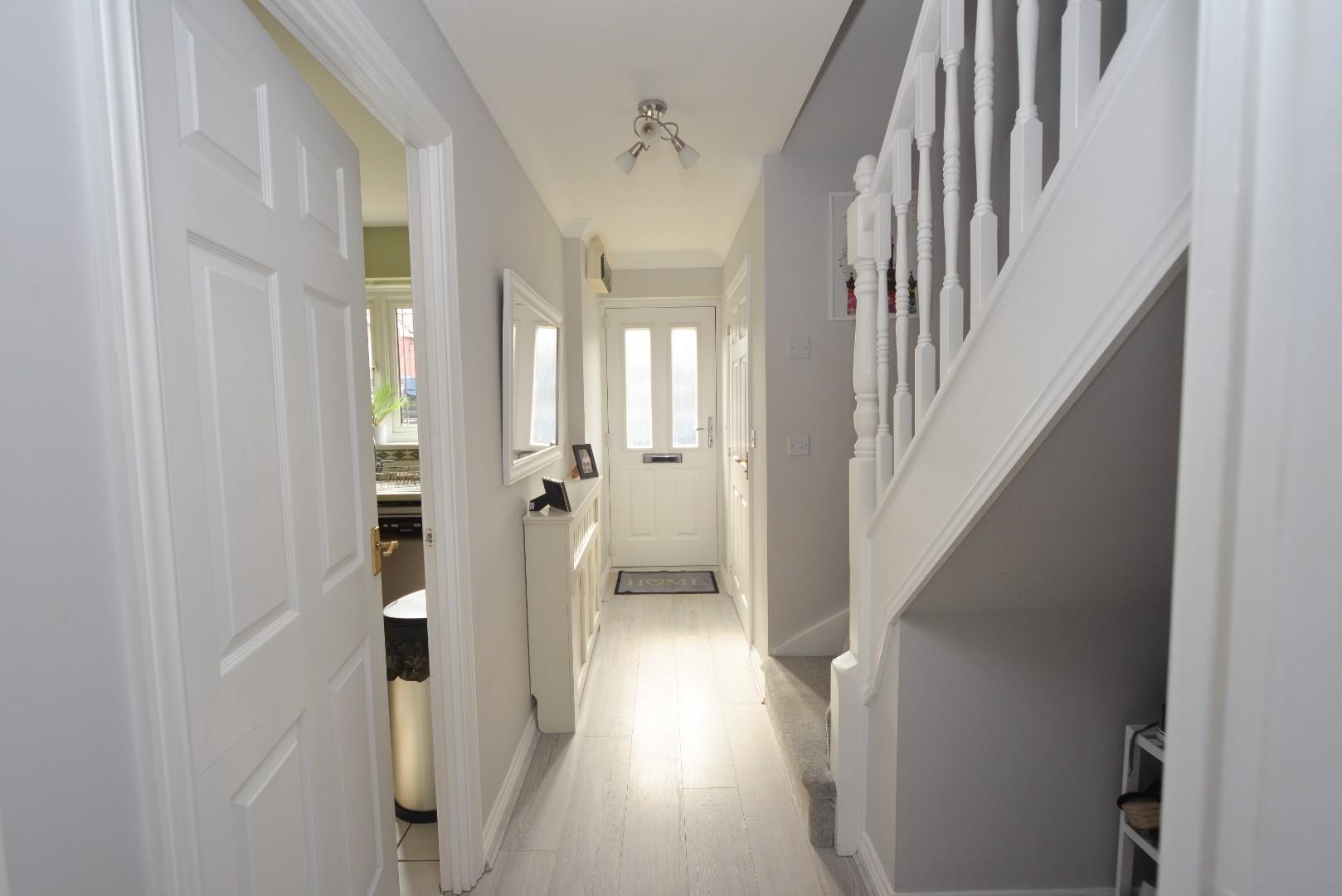 Having wood effect flooring, stairs to the first floor, doors to the kitchen and lounge and a further door opening into the guest cloakroom
