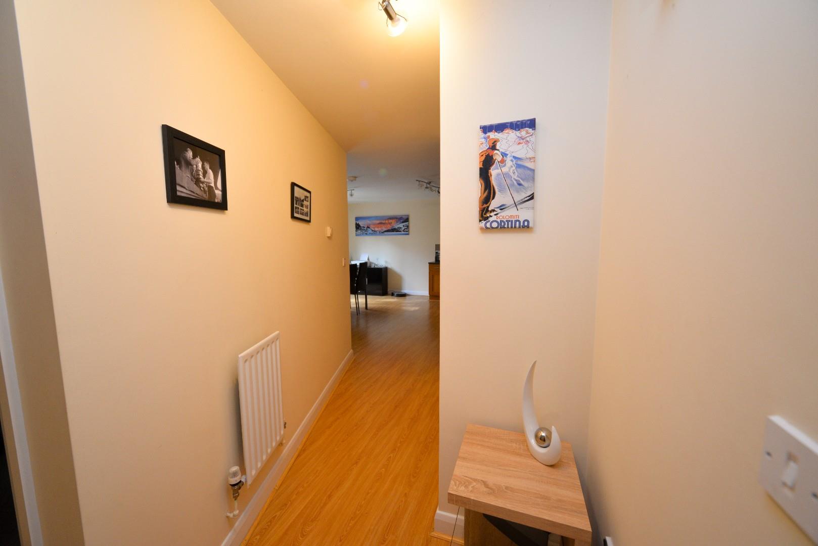Wood effect laminate flooring, central heating radiator, smoke alarm, built-in storage cupboard and internal doors.