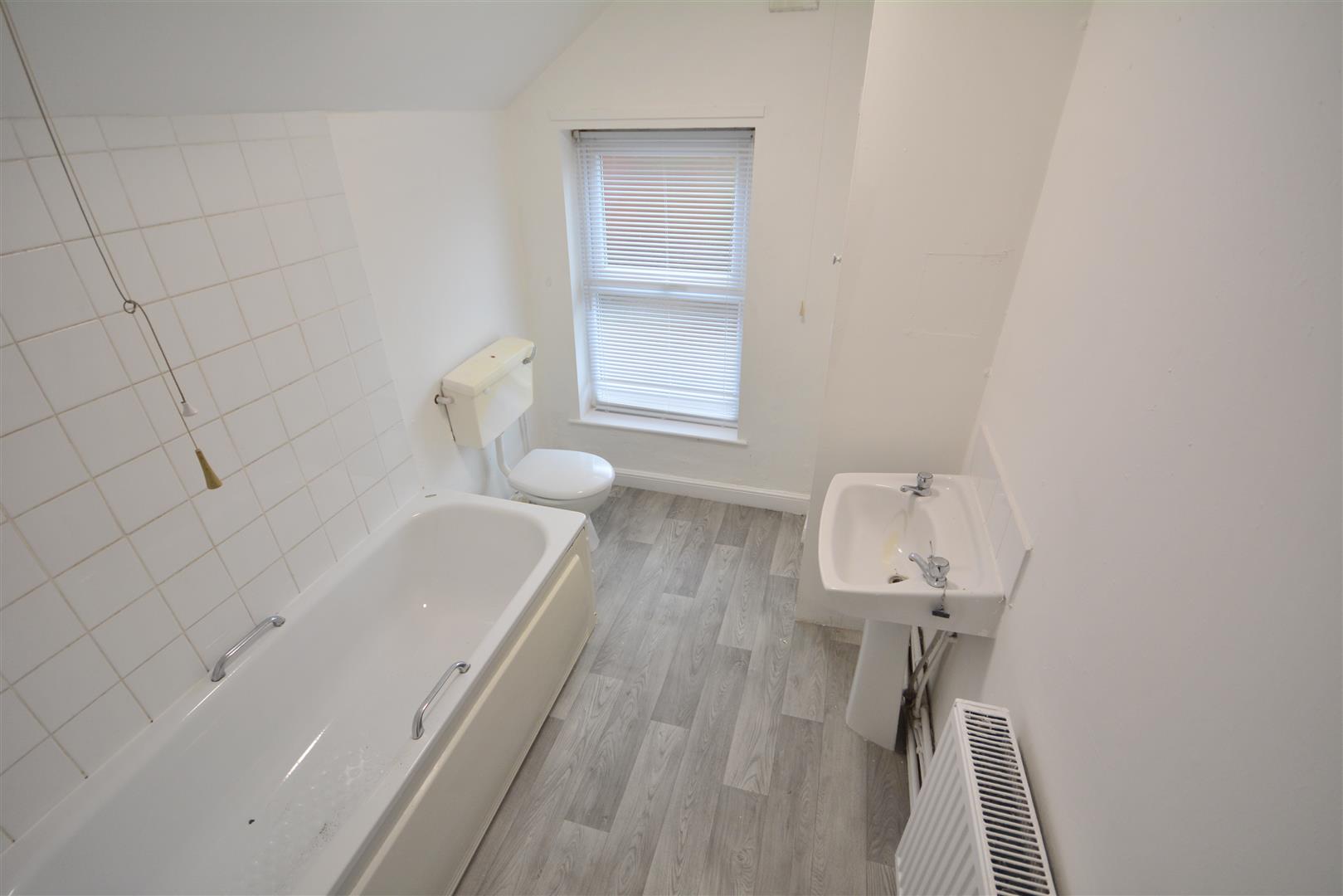 With full white suite comprising panelled bath with electric shower fitted over, low flush wc, pedestal wash hand basin, radiator and obscure double glazed window to the rear.