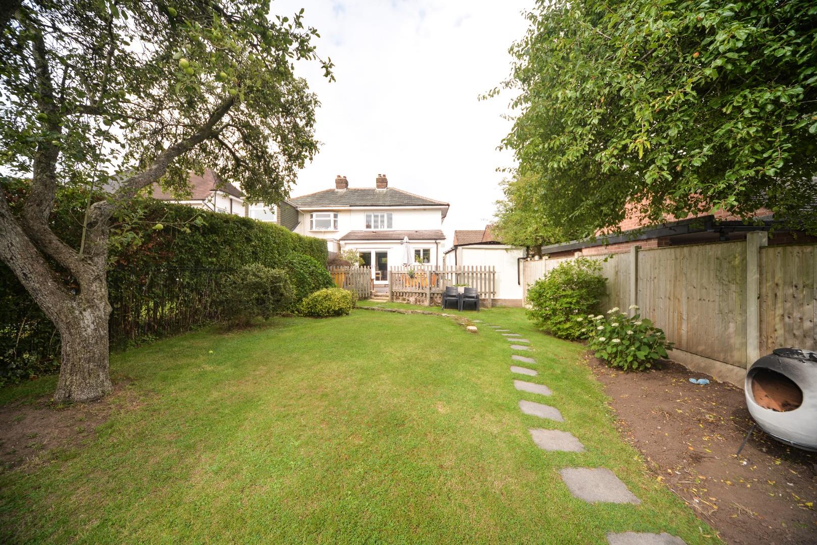 Outside, the property continues to impress with a generous garden that is a true highlight. The front of the house features a driveway with parking for vehicles, while the rear garden showcases a period blue brick patio that leads to a large, sweeping lawn with mature trees and shrubs, providing a tranquil space for relaxation and outdoor activities. Additionally, a garage offers further convenience.