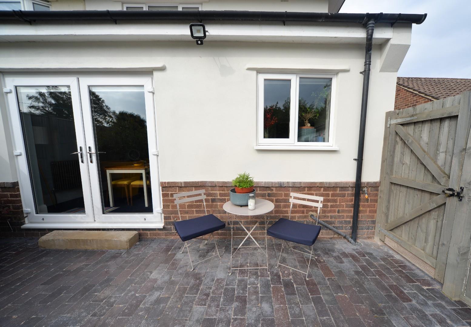 Upon entering, you are greeted by a welcoming hallway that sets the tone for the rest of the home. The property boasts two reception rooms, including a cosy sitting room and a spacious lounge and dining area, which features French doors that open onto the garden, creating a seamless connection between indoor and outdoor living. It also features an open fire in a period-style fireplace. The superbly fitted kitchen, complete with a utility cupboard, is designed for both functionality and style.