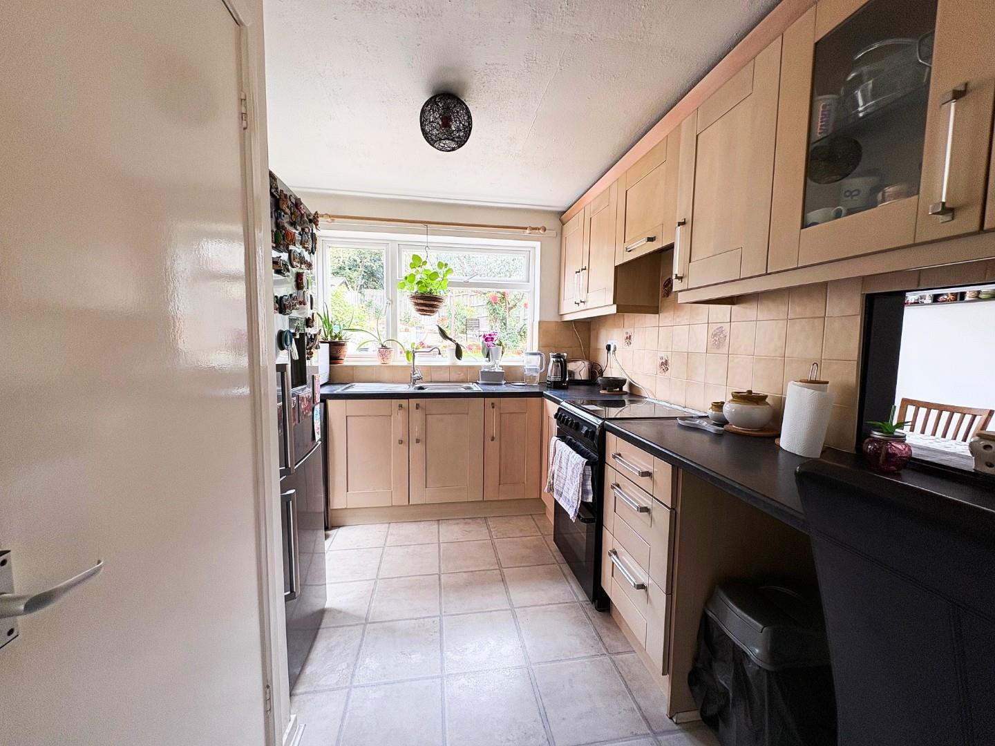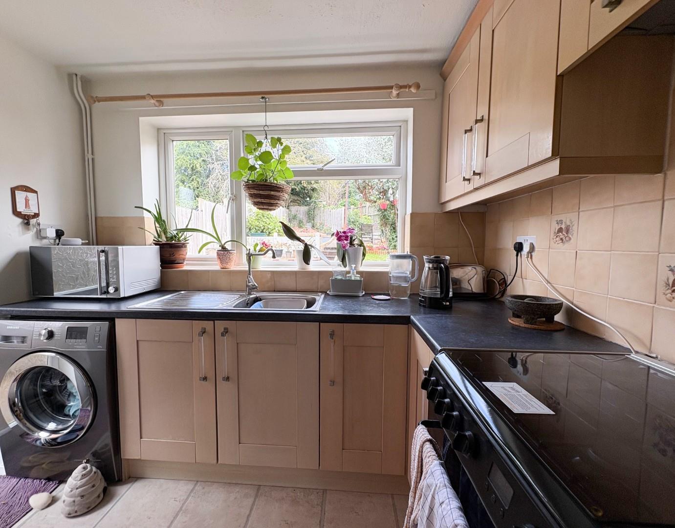 Is fitted with a range of base cupboards, drawers and matching wall mounted cabinets, worktops incorporate a stainless steel sink and side drainer with mixer taps, there is space for a gas cooker, space for washing machine, space for tumble dryer, a door leads out to the rear aspect, there is a window looking out over the attractive rear garden and a useful built in pantry storage cupboard which houses the Baxi domestic hot water and central heating boiler and allows ample space for the pantry.