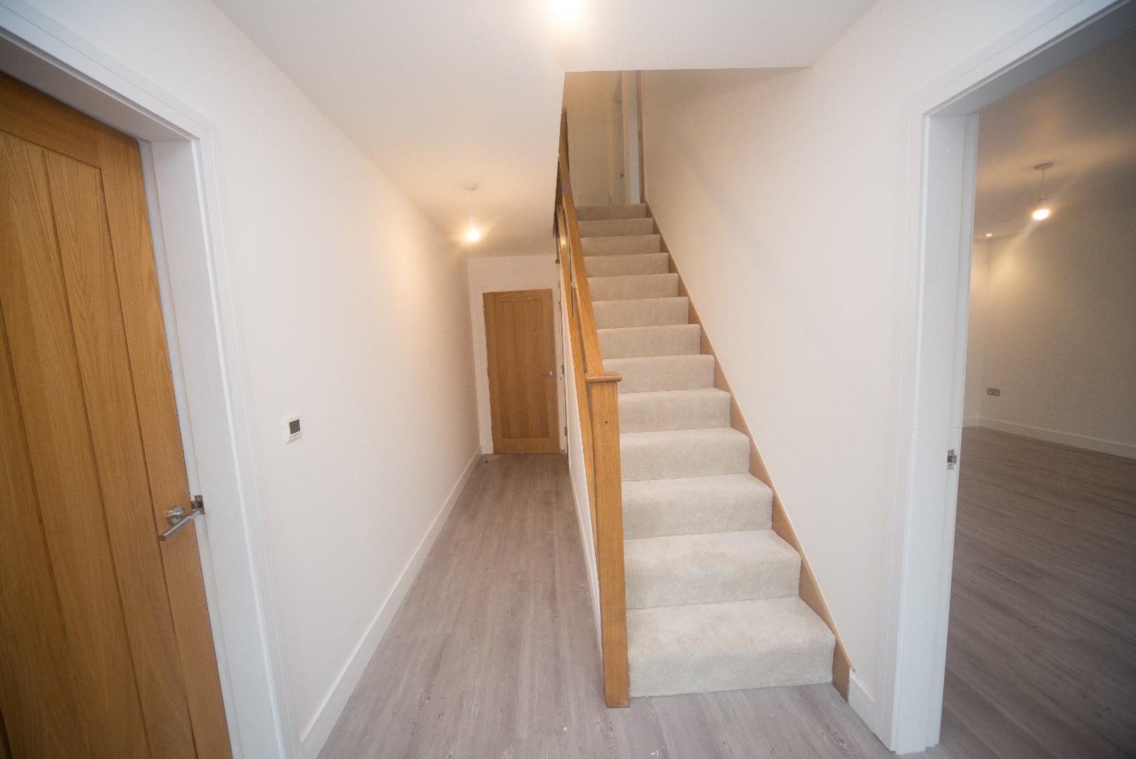 Stairs rise to second floor, radiator and ceiling light point.