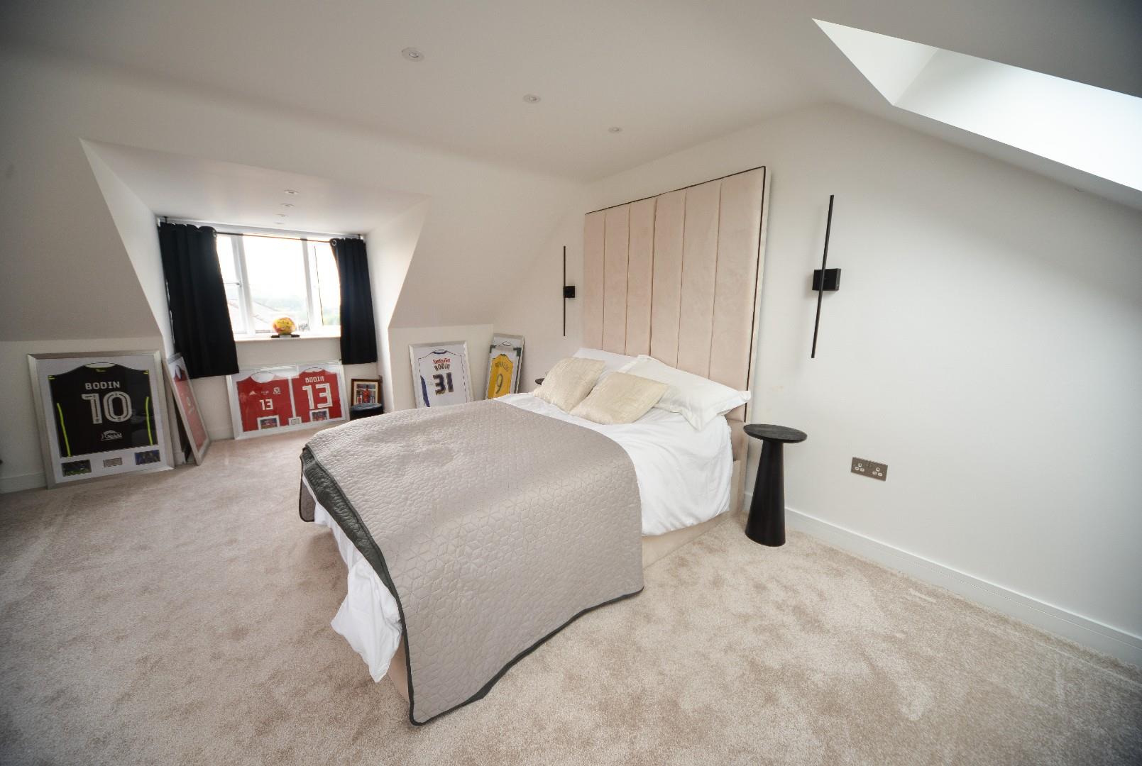 Three Velux windows to the rear aspect, window to the front aspect, recessed ceiling down lights and radiator.