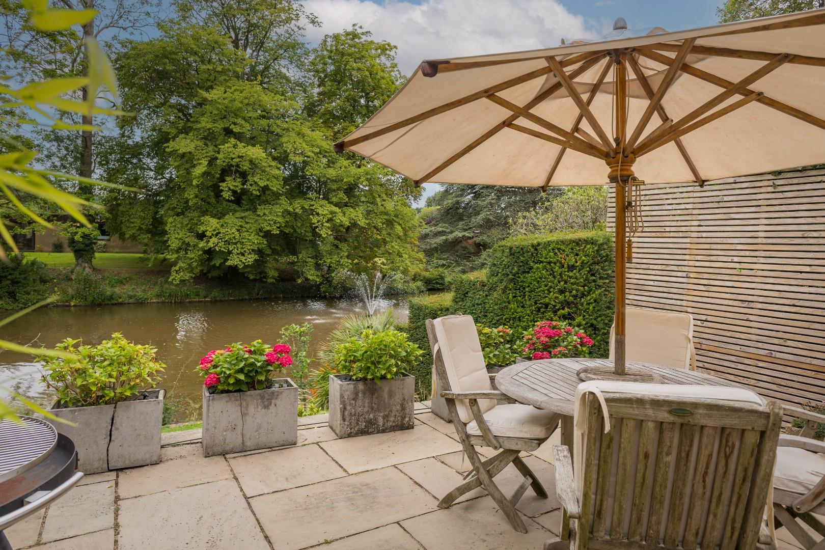 The setting of this property is truly exceptional, featuring stunning patios and a lawn that overlooks the lake, creating a perfect space to relax and enjoy nature at its finest.