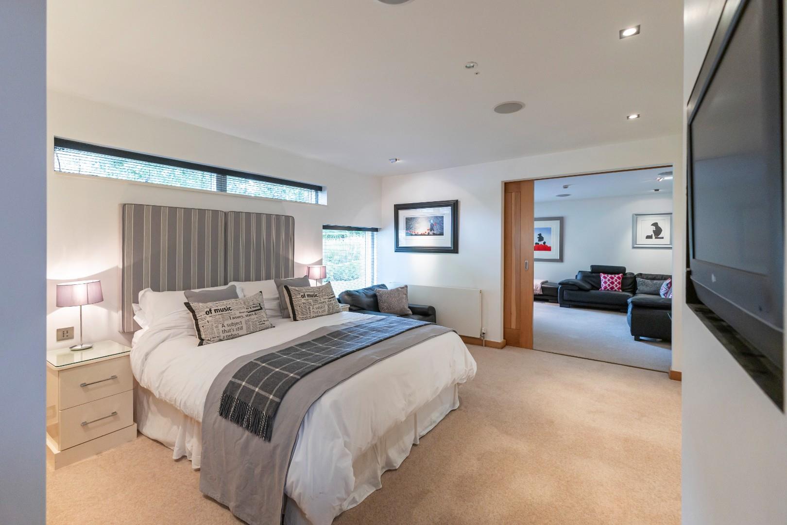 The guest suite or annex is perfect for visiting family and friends, teenage children or for accommodating a dependent relative. This space features a bedroom overlooking the front of the property, an en-suite walk in shower and oak sliding doors open into a sitting area or can be closed for privacy and used as an additional bedroom when required.