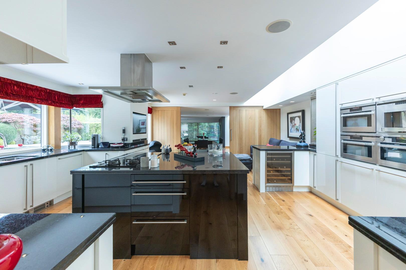 The home's design maximises both light and views, showcasing exceptional craftsmanship through its stunning pivoted oak doors, oak window shutters, high-end kitchen with granite countertops, and bathrooms, as well as fitted wardrobes and bespoke study furniture. The house is also enhanced with a house management system.