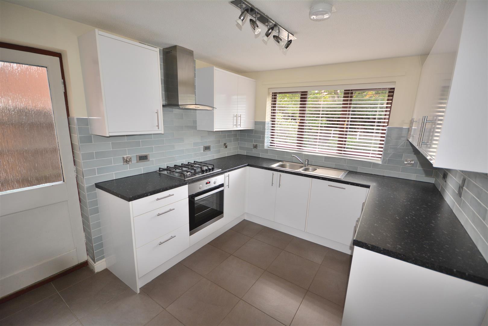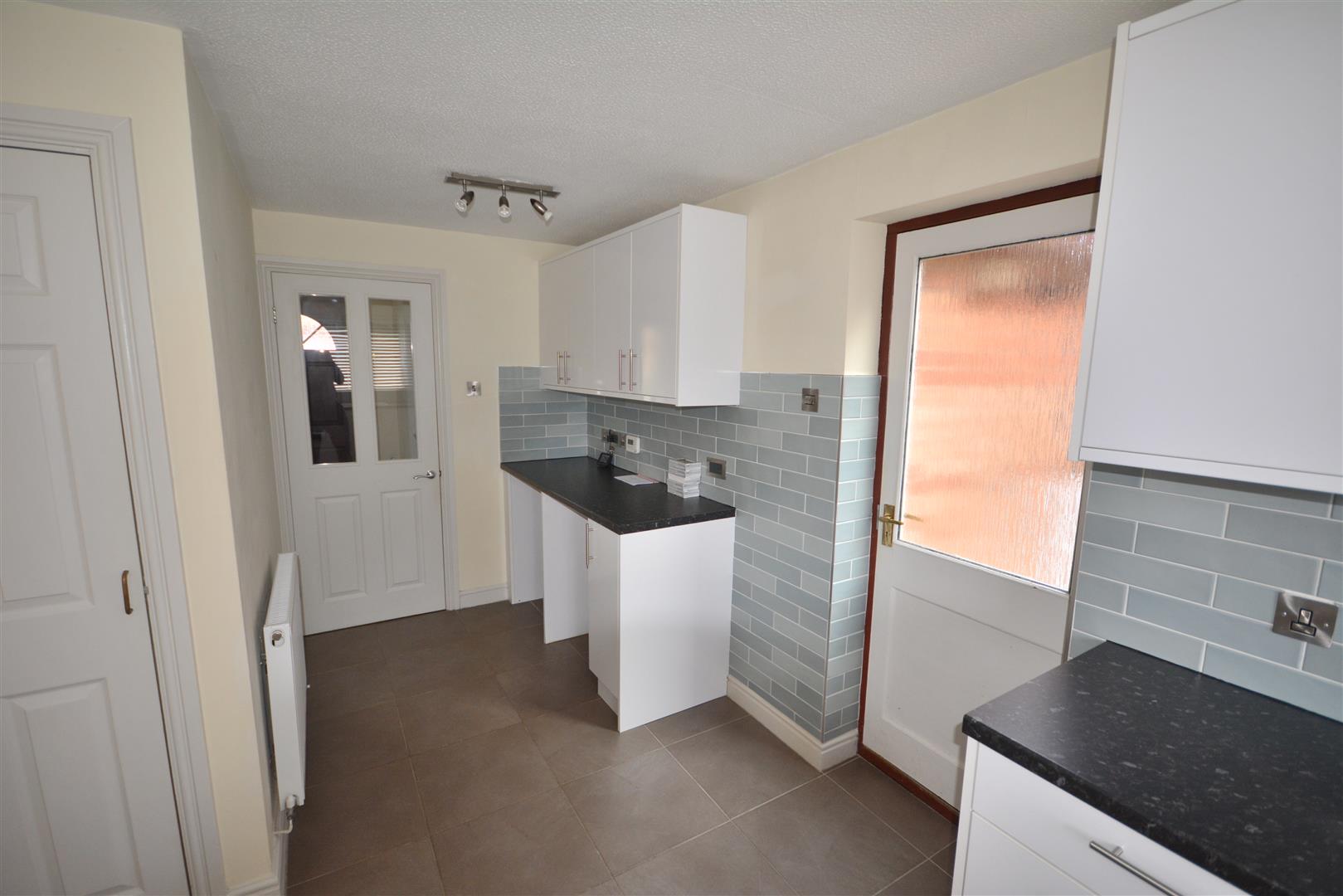 Modern fitted kitchen comprising gloss fronted wall and base units with roll edged laminate work surfaces over, built in single sink with drainer. In built electric cooker with four ring gas hob over and cooker hood. Space for a fridge freezer, tiled flooring and radiator. UPVC double glazed windows and wooden door leading to the garden. On continuation is a utility area with space for a washer machine & dryer.