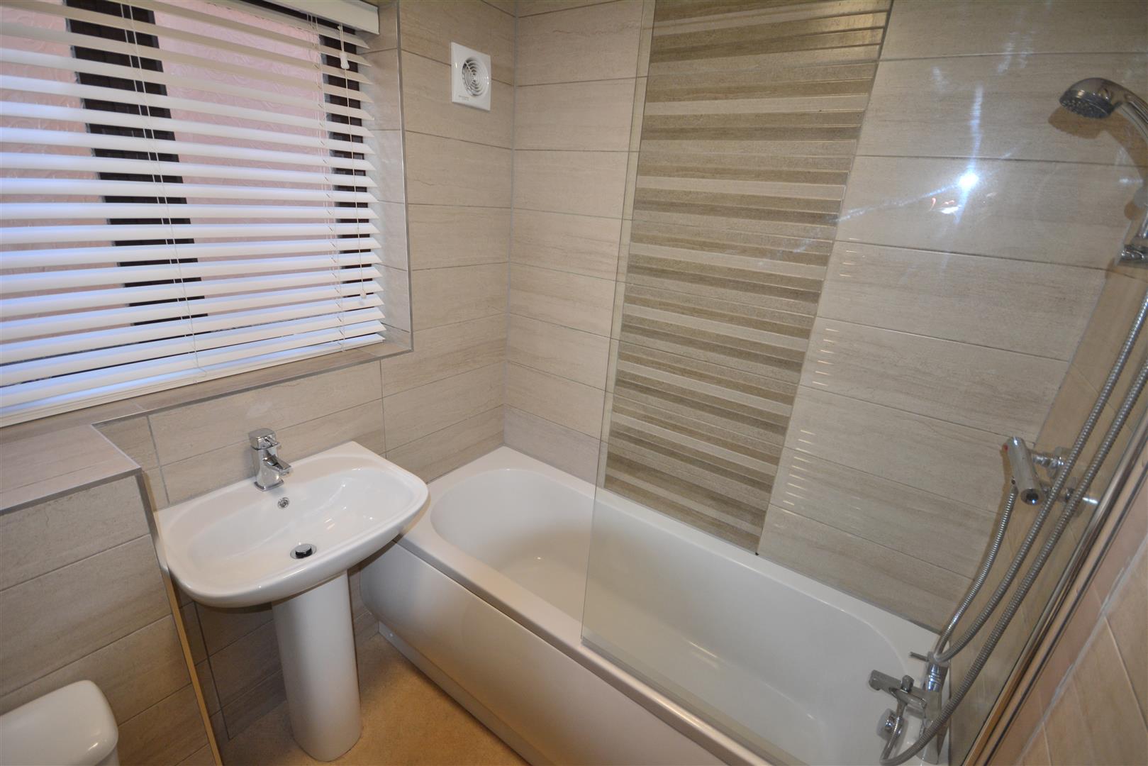 Fitted with a modern three piece white suite comprising panelled bath with shower over, pedestal wash hand basin and low flush W/C. Tiled throughout.