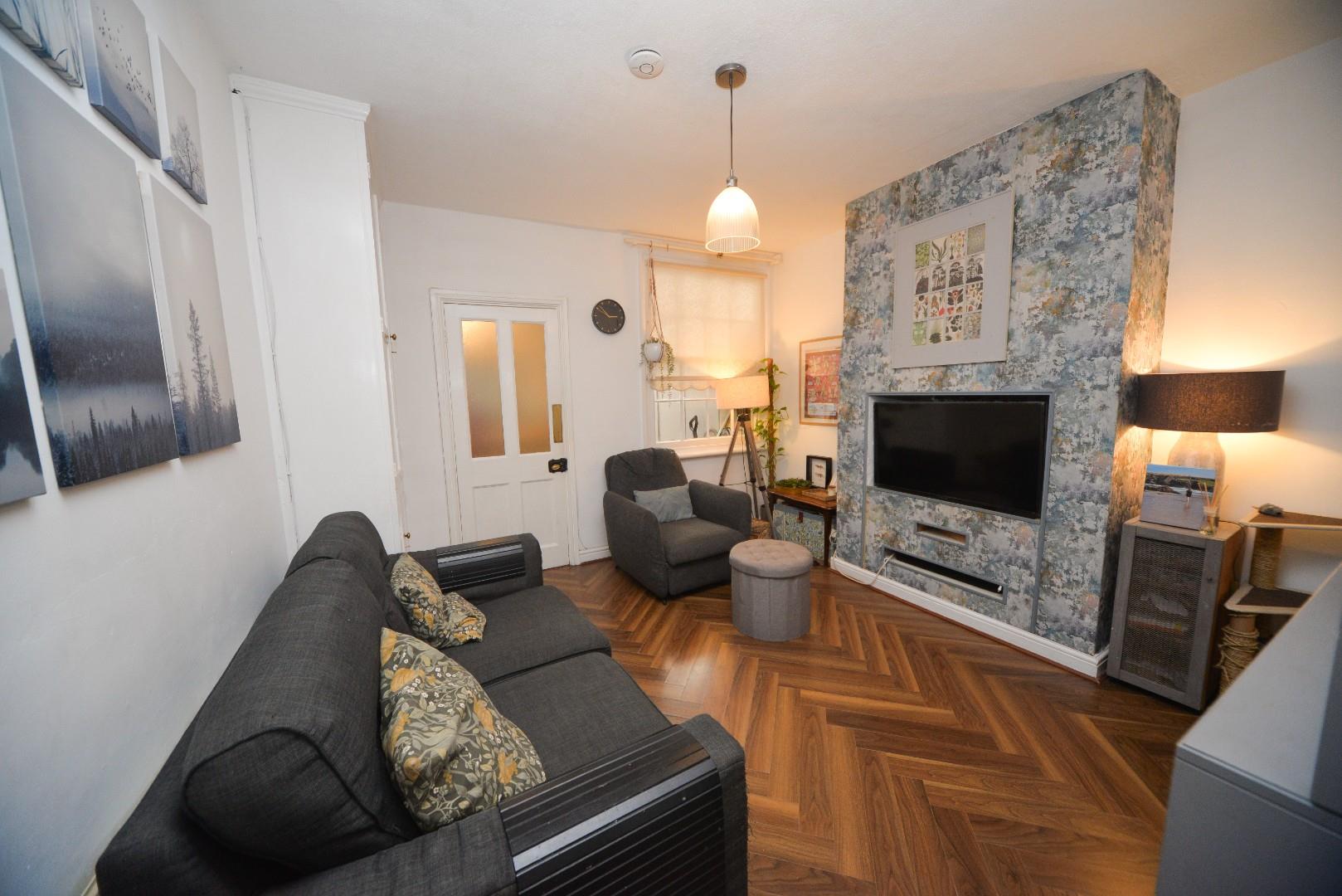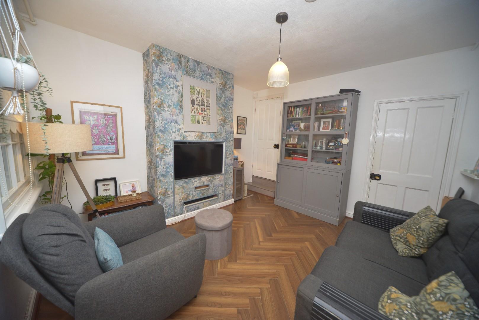 Has stairs off to first floor, window looking out to the rear, media wall and door to attractively fitted dining kitchen.