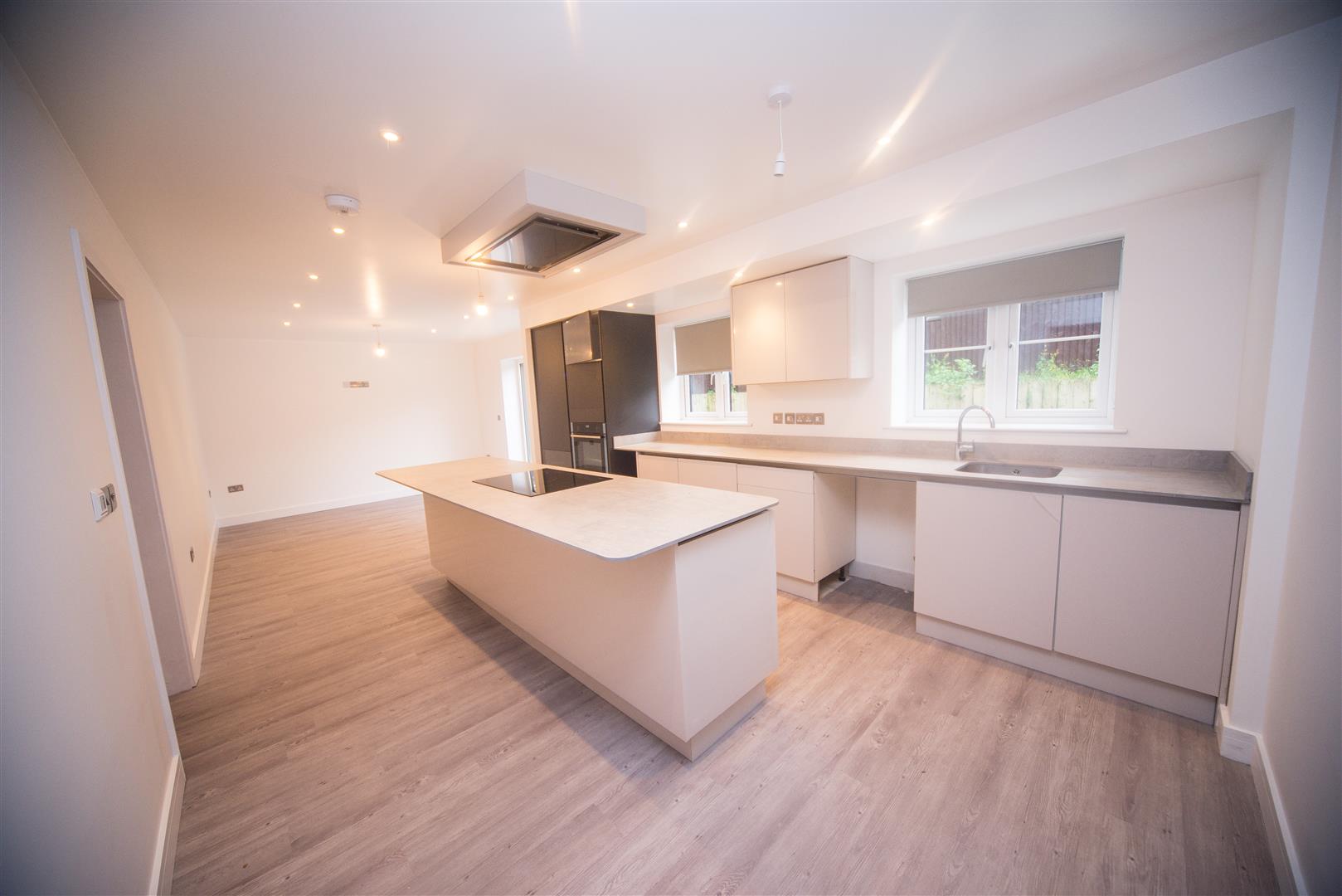 This space is superbly equipped with contrasting base cupboards, drawers and wall mounted cabinets. The worktops are inset with a four-ring electric hob and stainless steel sink with mixer taps; integrated appliances include an oven,fridge, freezer and space for a dishwasher; there is a Neff extractor fan, recessed ceiling down lights, ceiling light points, wood effect flooring. Tri-fold doors lead out onto the rear patio, there are two further windows looking out onto the rear garden and a wide opening through to the utility area.