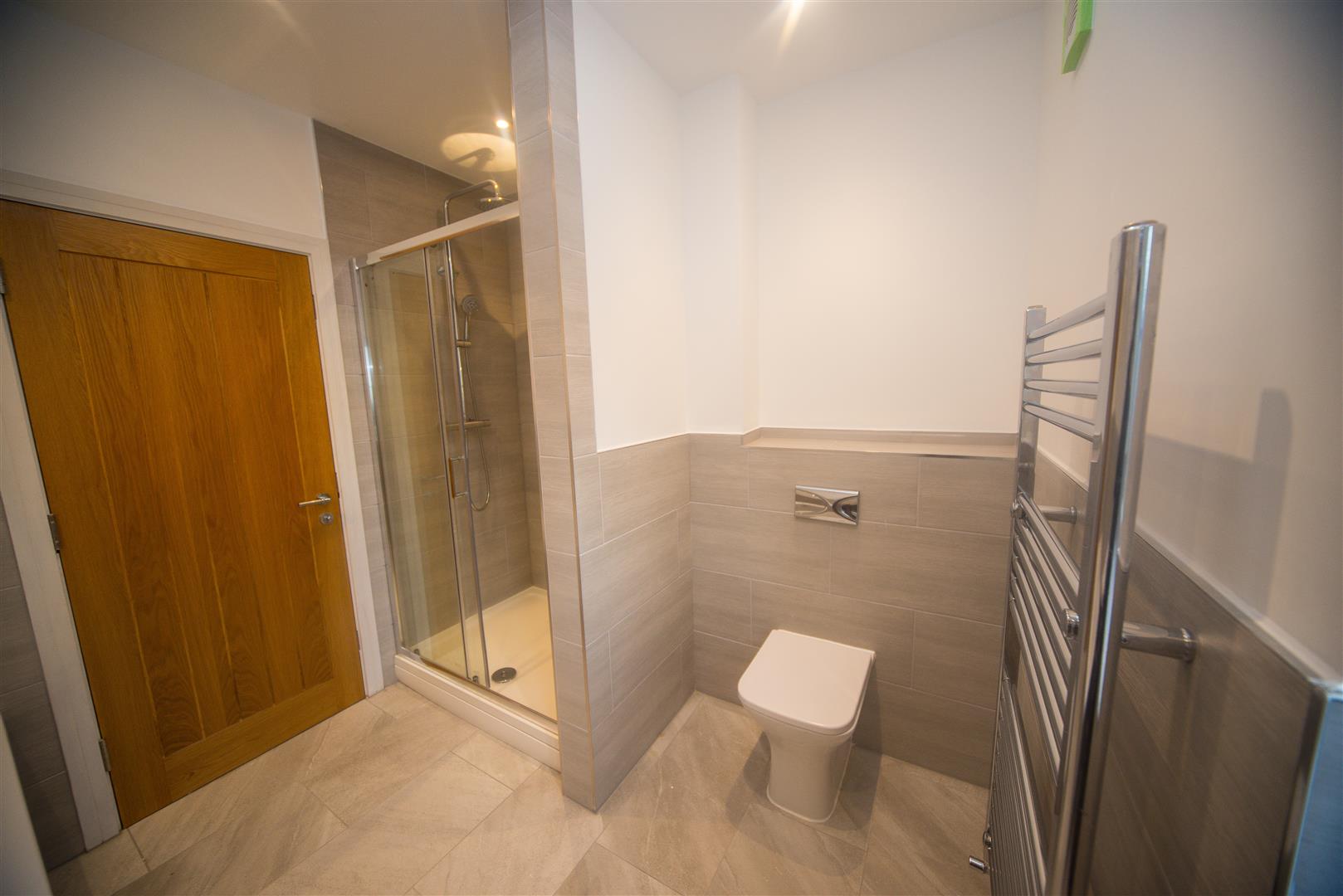 With a window to the rear aspect, fitted W.C., vanity unit with hand wash basin inset, heated chrome towel rail, tiled flooring and under floor heating.