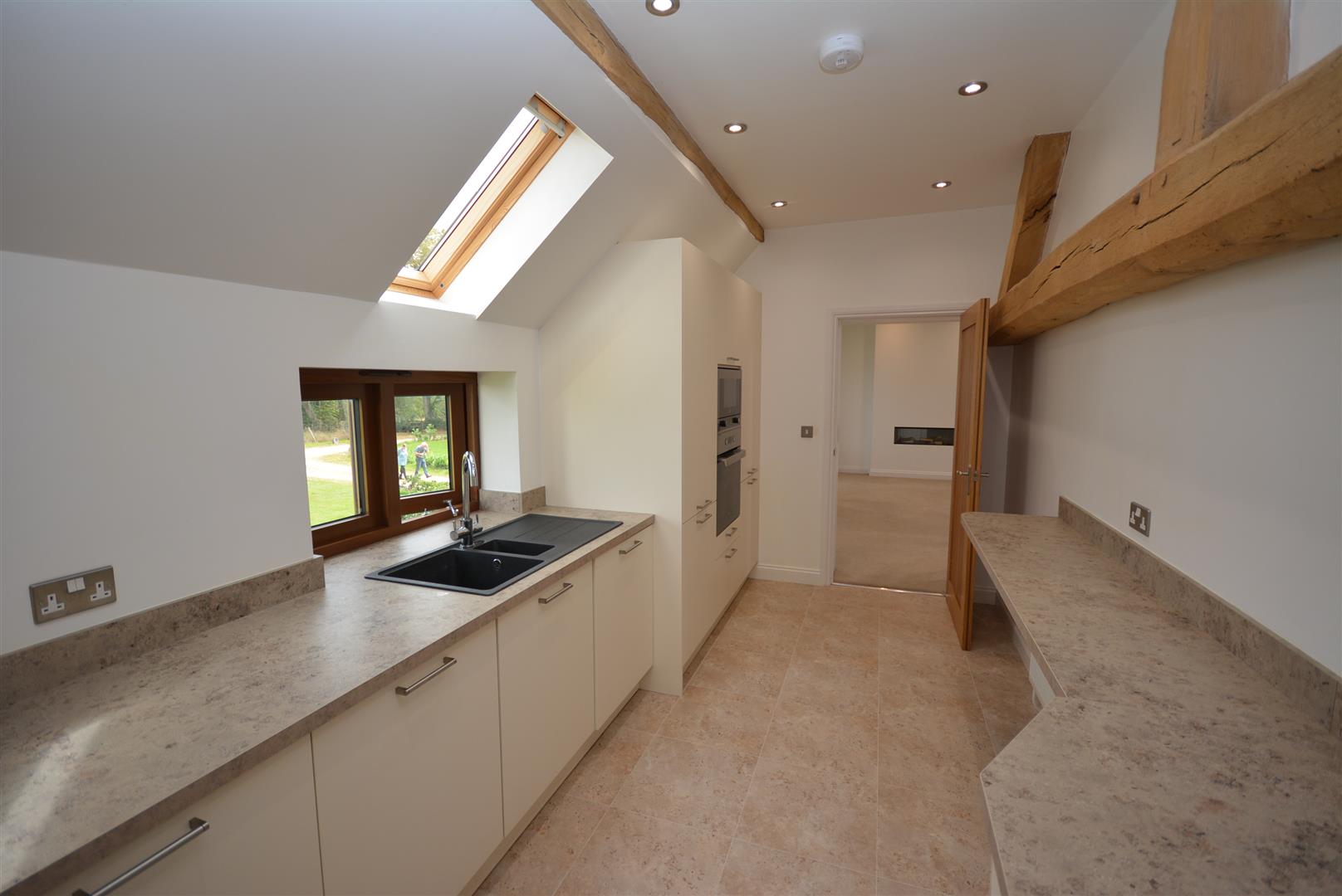 Having a range of fitted base, wall and & drawer units with matching cupboard fronts, feature laminate work surfaces with matching up stand, inset 1½ basin composite sink unit with draining board and mixer tap in chrome. Built-in four ring induction hob with state of the art raising extractor system, integrated appliances include; automatic washing machine/tumble dryer, dishwasher, refrigerator, freezer, electric fan assisted oven and microwave grill. Exposed timber trusses, double central heating radiator and sealed unit double glazed Velux roof light with additional double glazed window with fine far reaching rural views.