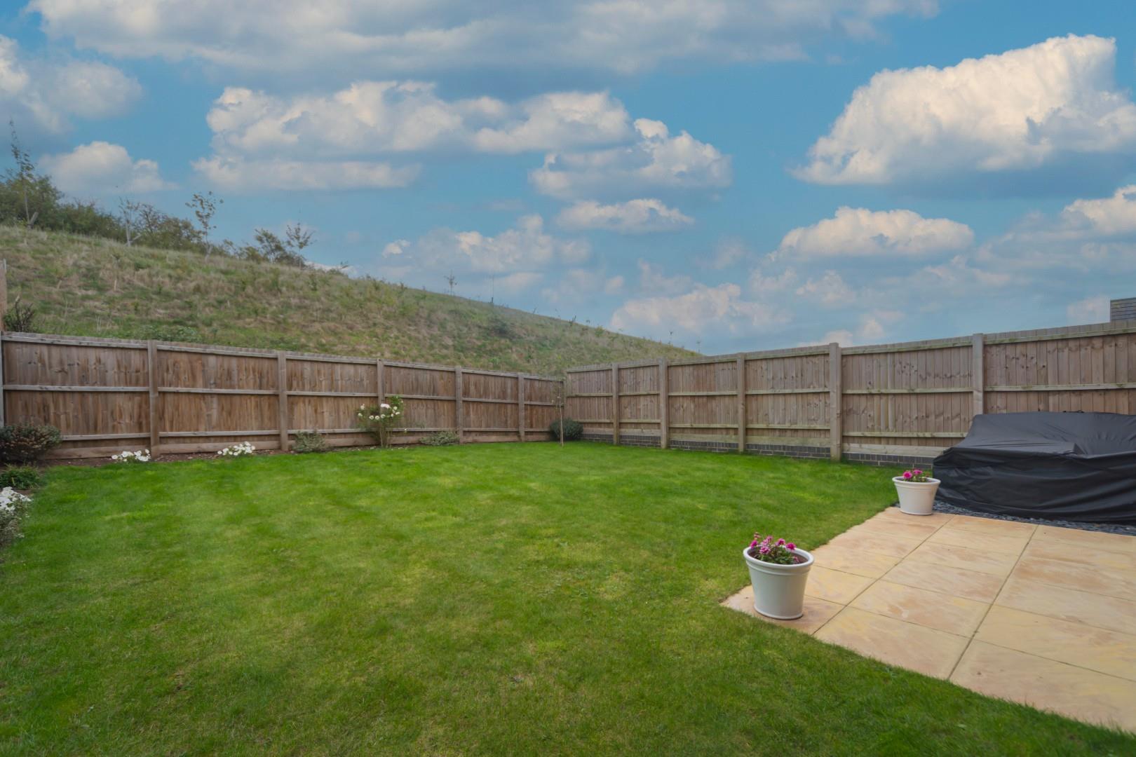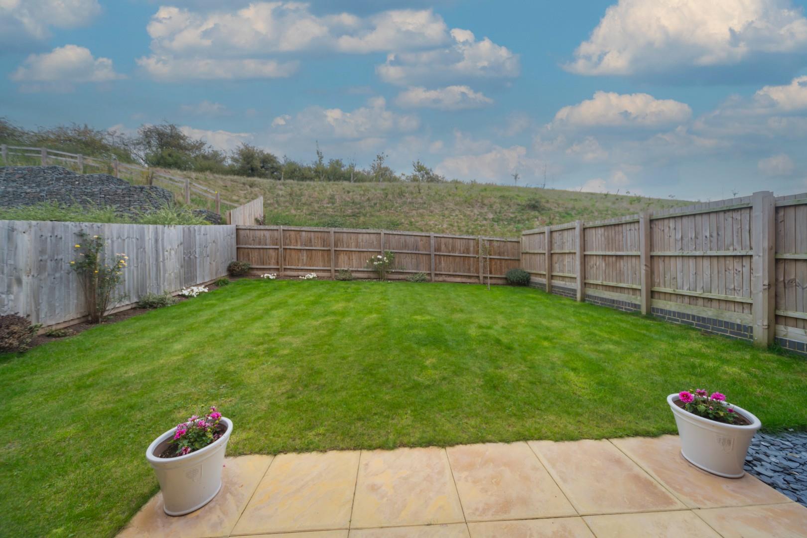 The property sits back behind an attractive block paved driveway providing parking for two vehicles and leading to the garage and adjacent lawn with shrub borders. To the rear, the garden is fully enclosed with a fenced boundary and is predominantly laid to lawn with paved patio area, shrub borders and backing on to fields.