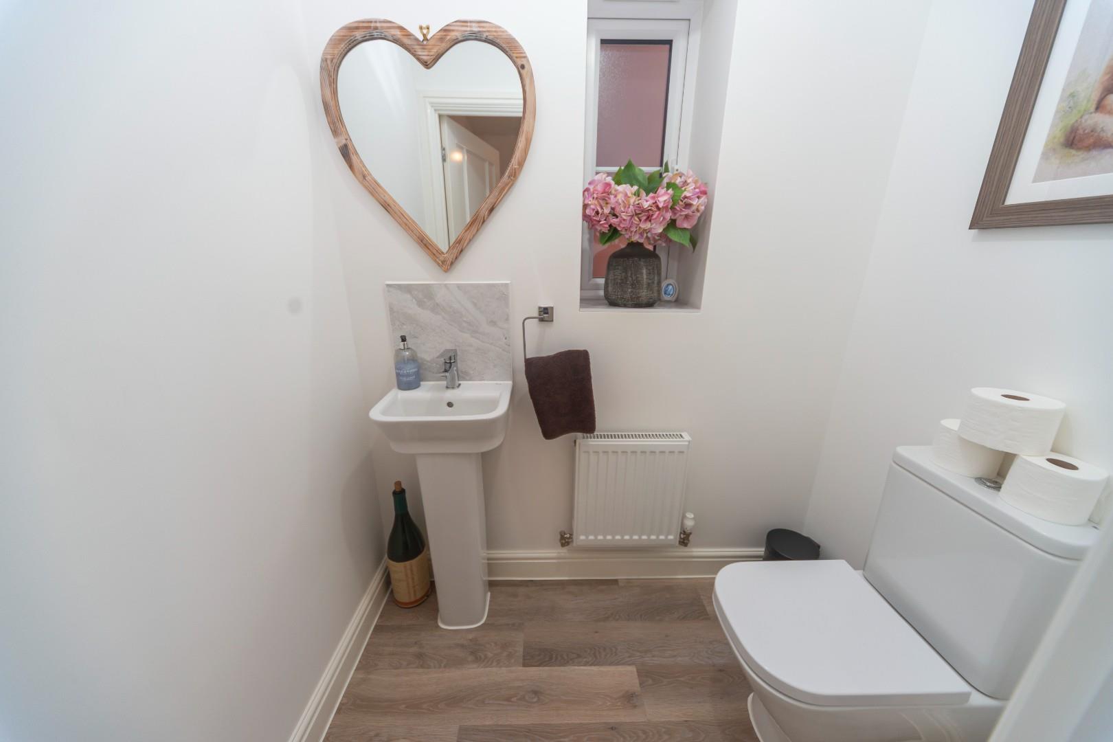 There is a window to the side aspect, radiator, W.C. and vanity hand wash basin with tiled splashbacks.