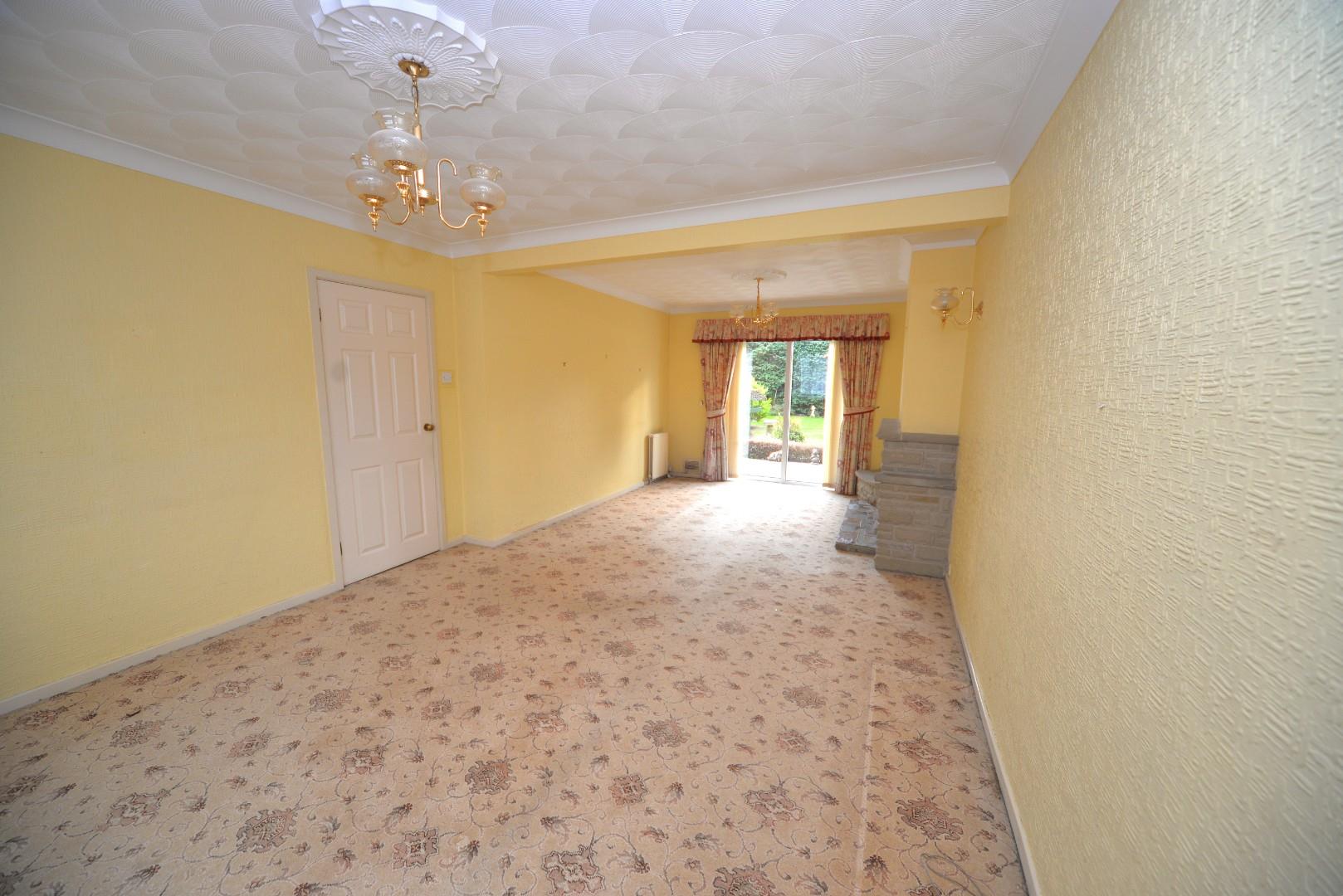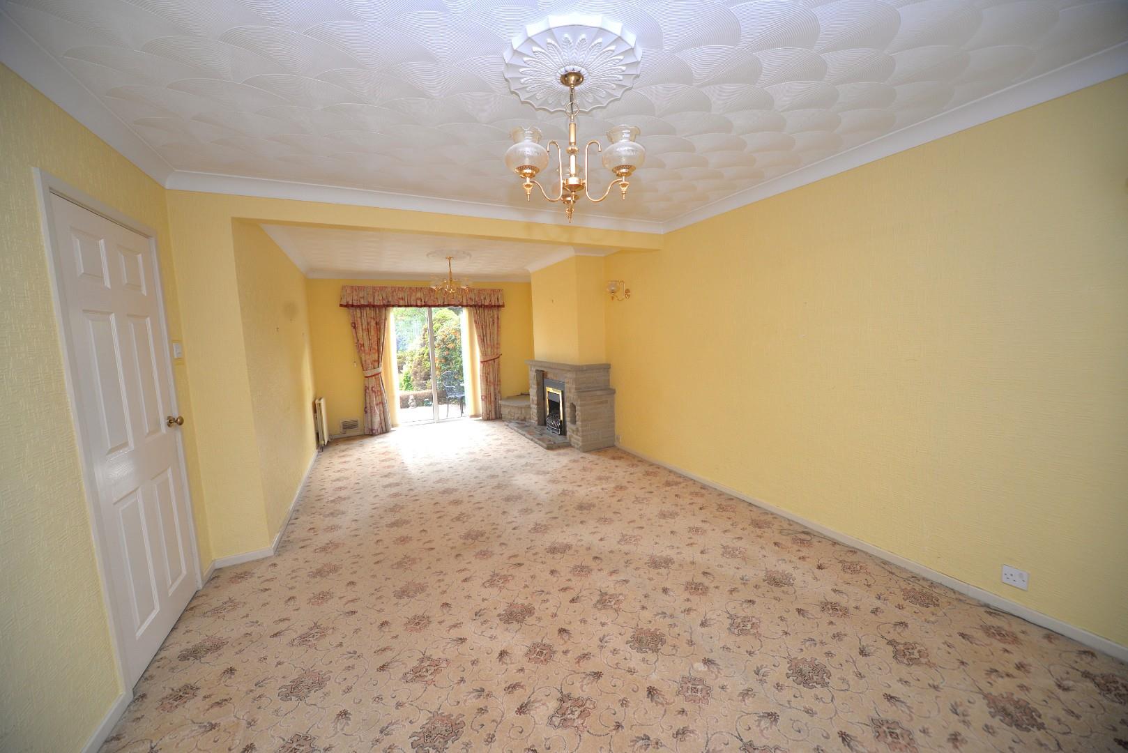 Has a small bay window to the front aspect, sliding patio doors to the rear, a stone feature fire surround with stone mantle and slate hearth with living flame gas fire inset, there is two ceiling light points, wall light points and radiator.