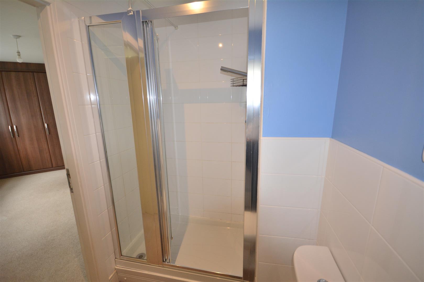 Comprising pedestal wash hand basin, low flush WC and double shower cubicle with bi fold door and mixer shower. Complementary ceramic wall tiling, electric panel heater, shaving point and obscure upvc double glazed window to the front.