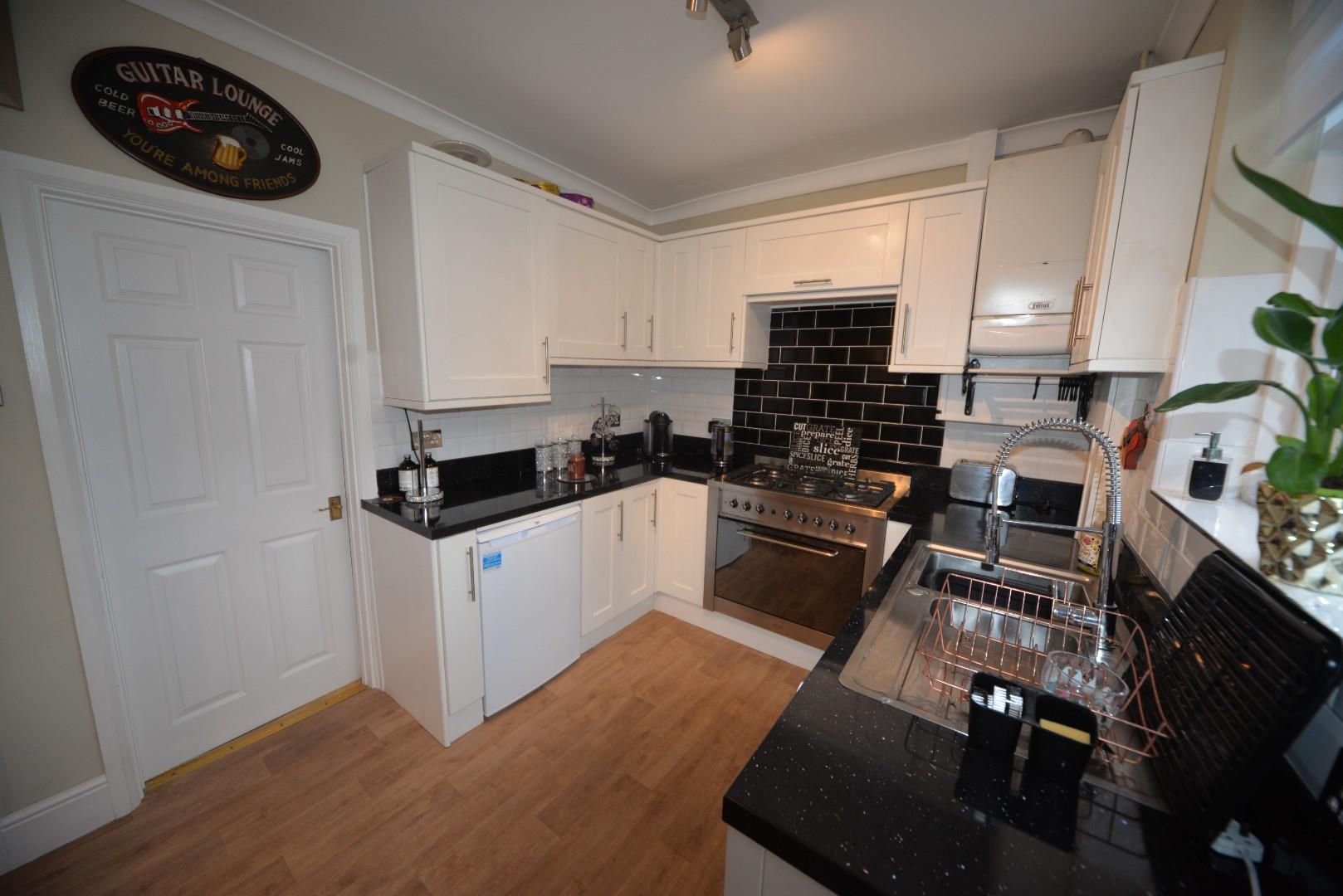 The kitchen is attractively fitted with a modern range of base cupboards and matching wall mounted cabinets, work tops incorporate a one and a quarter stainless steel sink with extendable hose mixer tap, there is space for a fridge, provision for washing machine and space for a range cooker with gas hob, there is an extractor fan above, attractive tiled surrounds and a useful under stairs storage cupboard ideal for hoovers and ironing boards, a door from the kitchen leads into the conservatory and a further door leads through to the lounge.