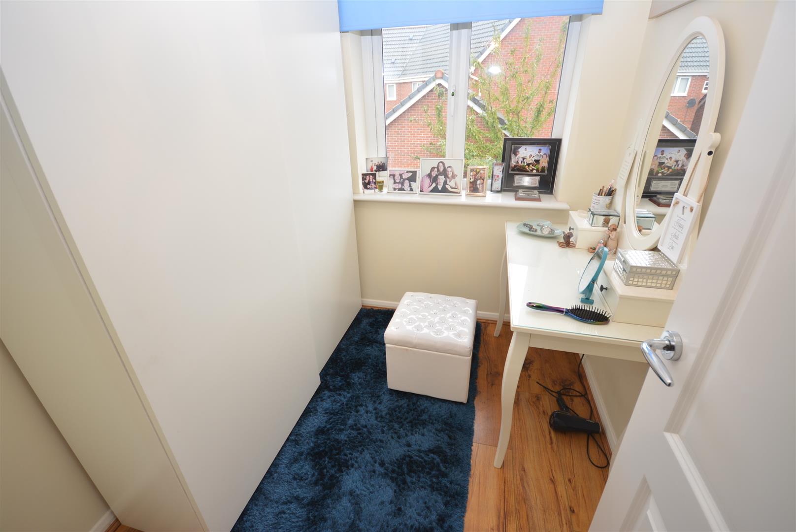 Range of built-in wardrobes having mirrored door, overstairs airing cupboard housing the hot water cylinder, central heating radiator, TV aerial point and two UPVC double glazed windows to the front.