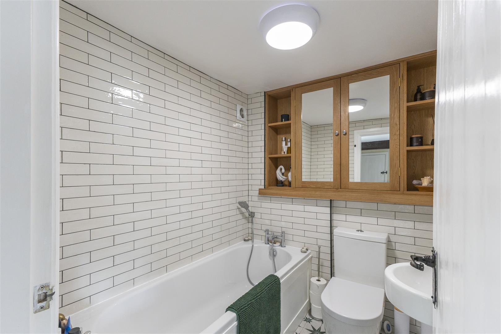 subway tiles. The second floor opens into a spacious guest bedroom with a built-in wardrobe and a superbly presented shower room, which features attractive subway-tiled walls, a shower, wash hand basin, and W.C.