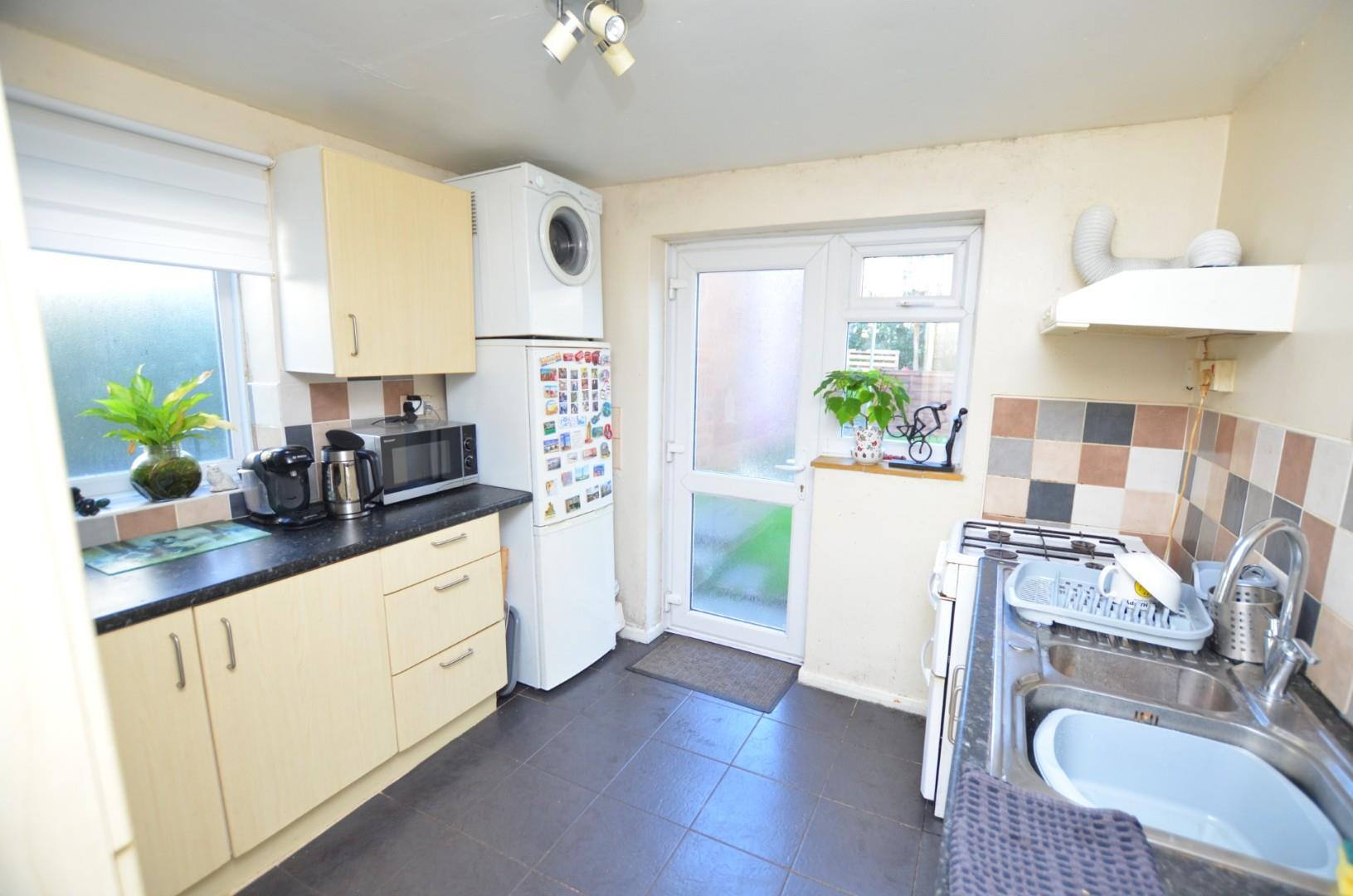 With a range of matching base cupboards, drawers and wall mounted cabinets, wood grain effect roll edged laminate work surfaces inset with a one and a half basin stainless steel sink unit. Double radiator, four ring oven with extractor hood, fridge and washing machine provided as a good will gesture and do not form part of the contract. UPVC wood grain effect obscure double glazed windows to both side and rear aspect, further UPVC obscure double panelled and glazed door provides access to the rear garden.