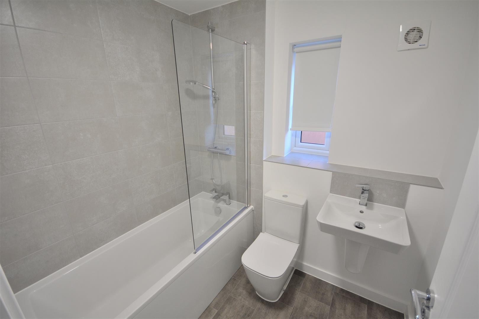 Fitted with a three piece white suite comprising panelled bath, pedestal wash hand basin and low flush W/C.
