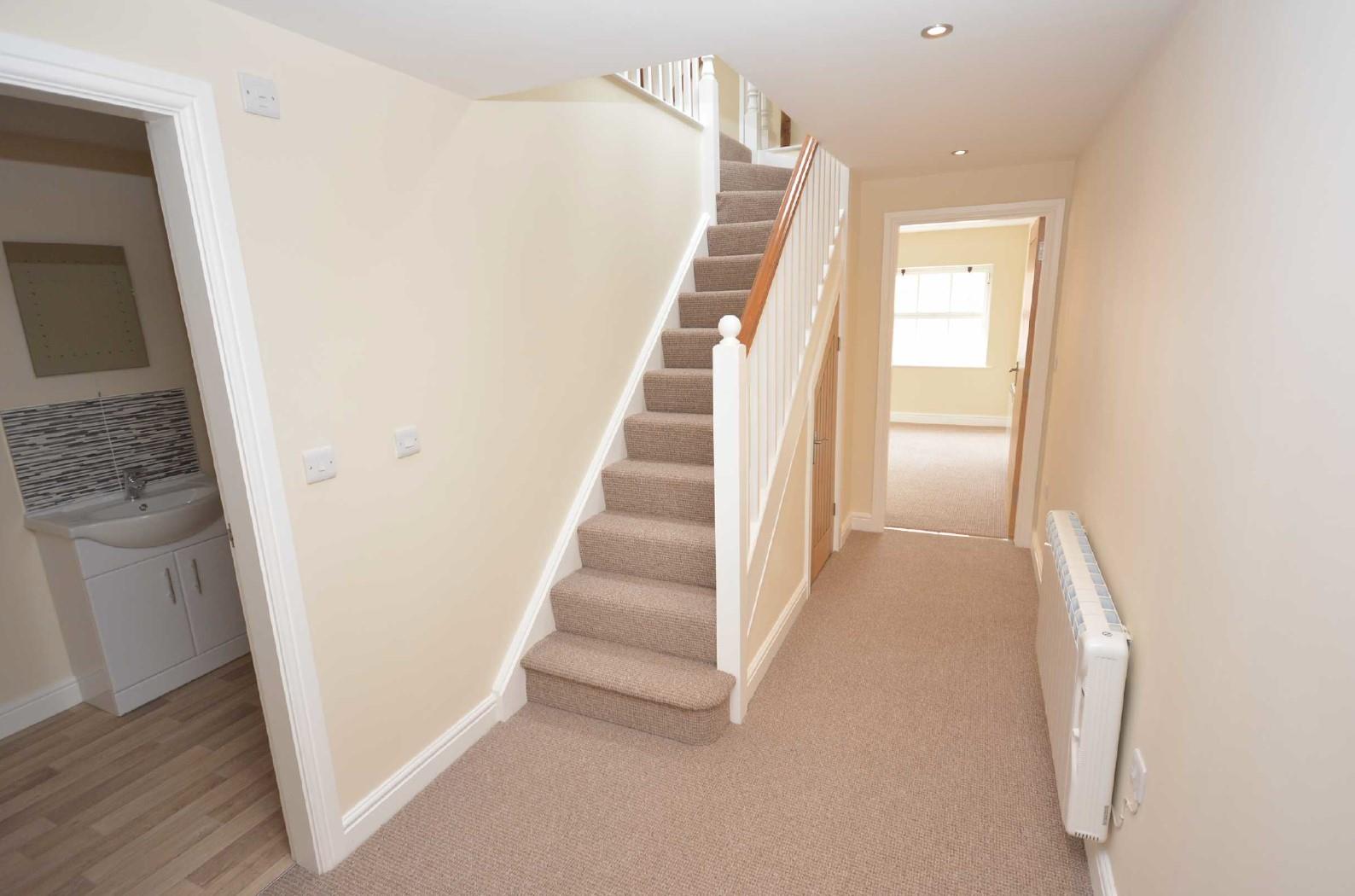 With electric panel radiators, useful storage cupboards and double glazed window to the side elevation. Stairs leading to the upper floor accommodation and doorway leads to;
