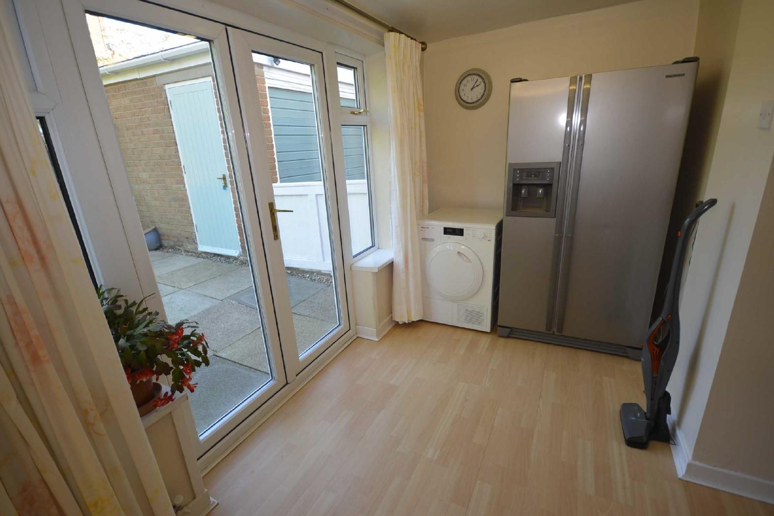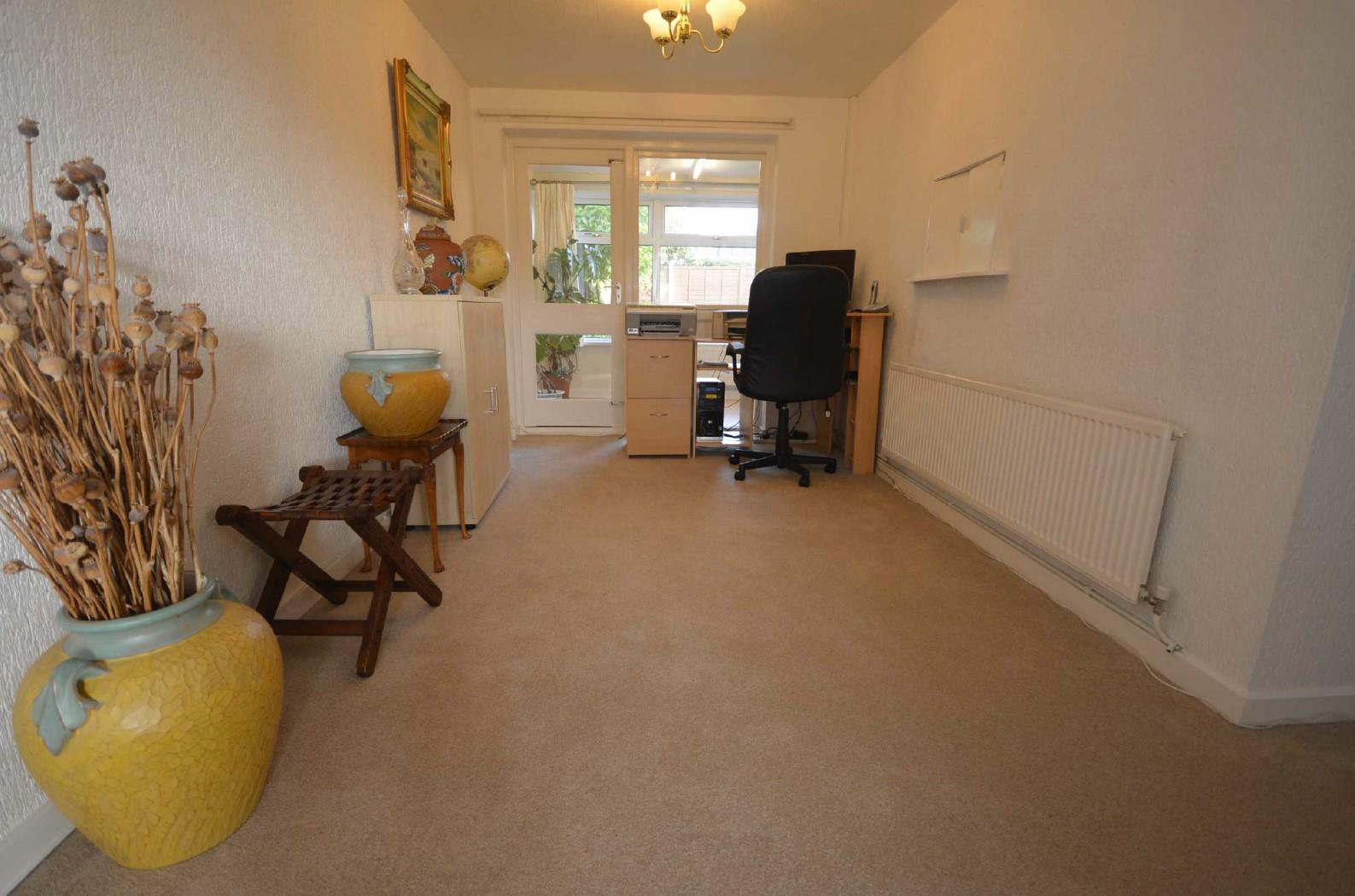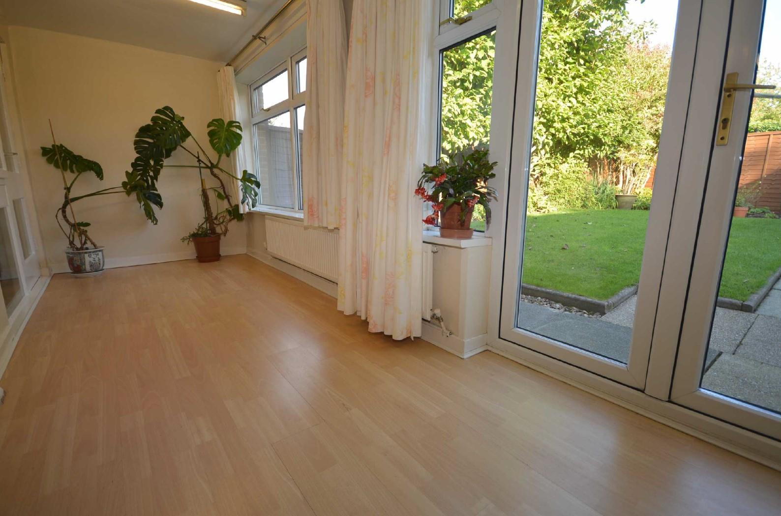 With a continuation of the woodgrain effect laminate flooring. Central heating radiator. uPVC double glazed window to rear. Sealed unit double glazed double doors provide access to the pleasant rear garden.