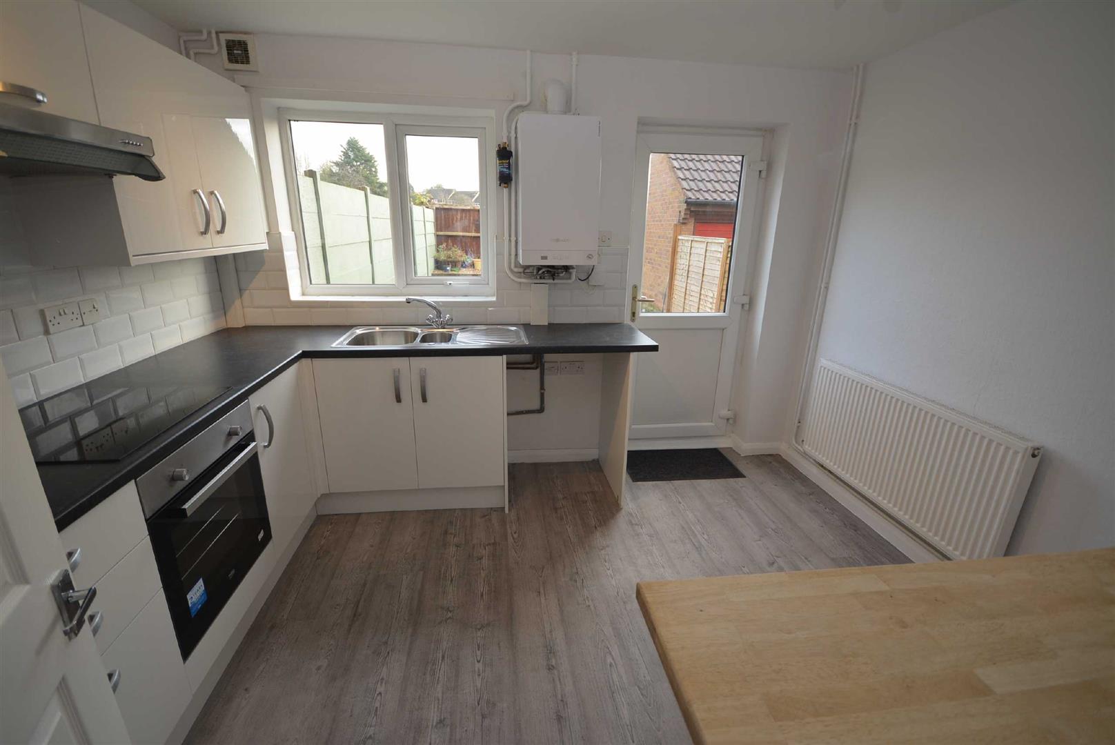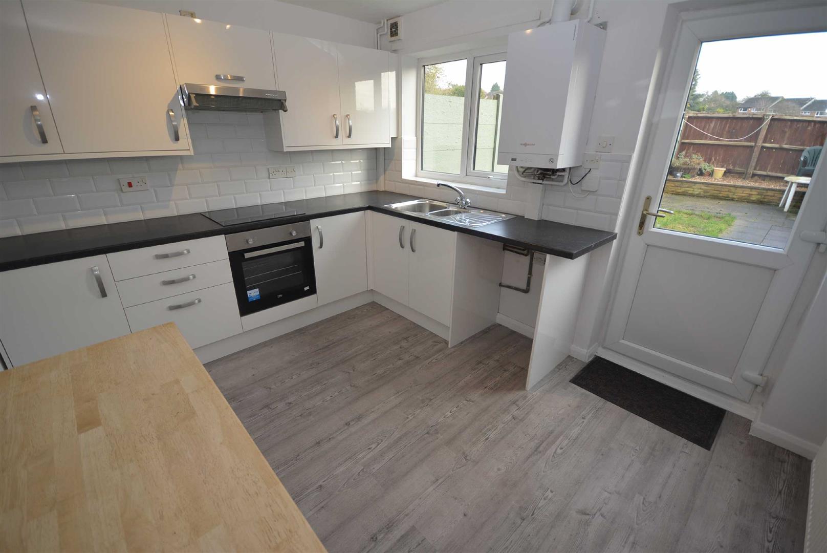 With a recently installed modern kitchen comprising, a range of base, wall and drawer units with matching cupboard and drawer fronts, integrated electric fan assisted oven with built-in four ring electric hob and integrated extractor hood with variable speed fan and lighting, complementary ceramic wall tiling, roll edge laminated granite effect preparation surfaces with inset 1½ basin stainless steel sink unit and draining board with mixer tap in chrome, wall mounted gas combination servicing the central heating and hot water systems, plumbing suitable for an automatic washing machine, feature breakfast bar, central heating radiator, UPVC double glazed window to the rear and UPVC double glazed and panelled door provides access to the rear garden.