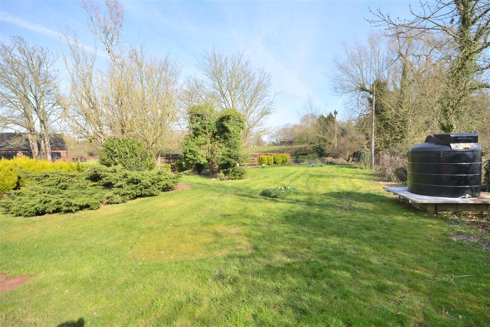 The property sits behind a farm gate and cattle grid, offering privacy and a rural feel. Spacious front garden is mainly laid to lawn, mature shrubs, and established trees. The oil tank is also discreetly housed within the front garden. A single Garage is also attached to the property.
